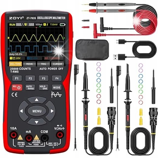 Multimetru cu osciloscop 2 in 1 Zoyi ZT-702S, 2,8'', test dioda, masurare temperatura, 17,7x8,9x4cm, set complet