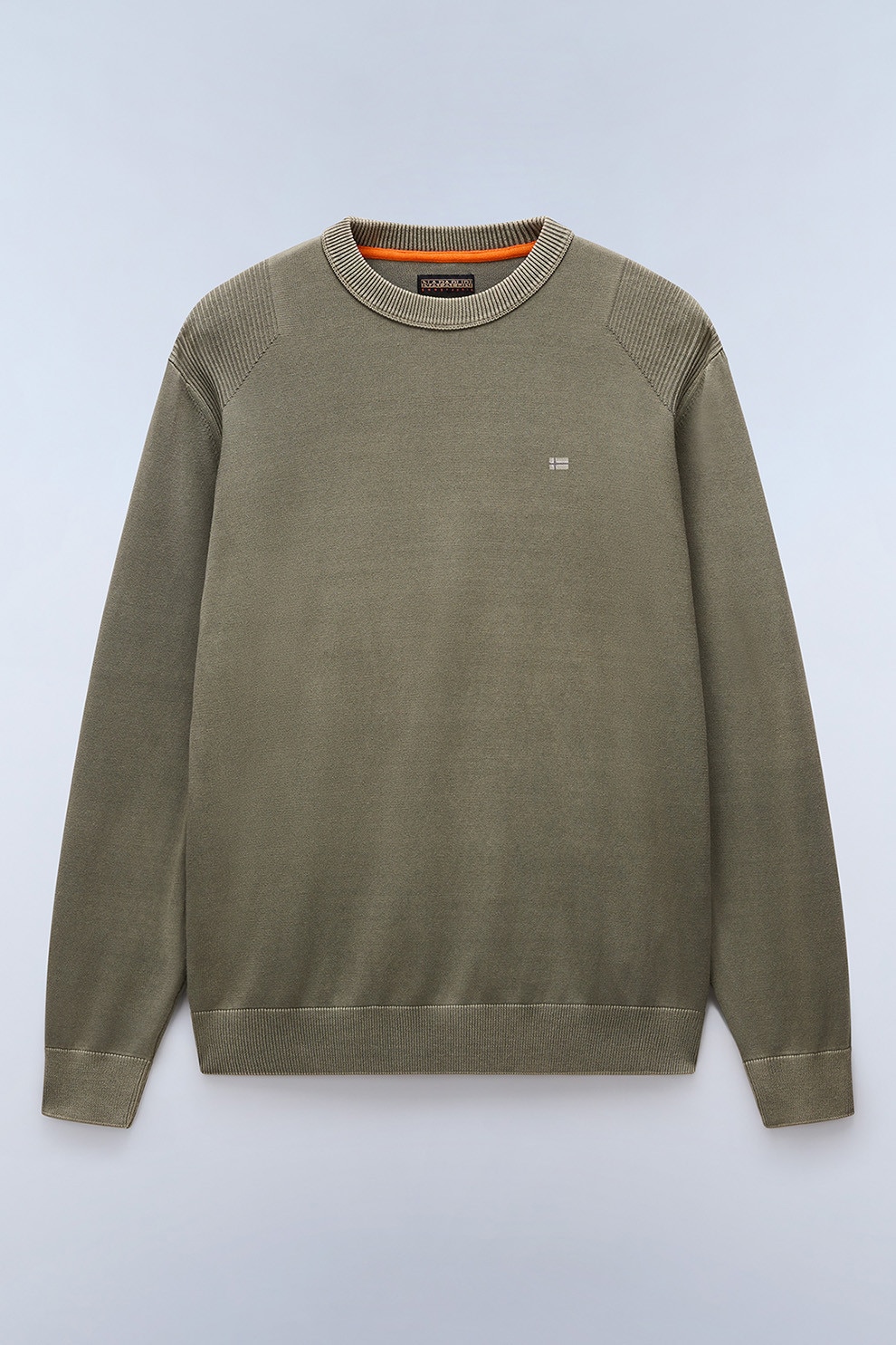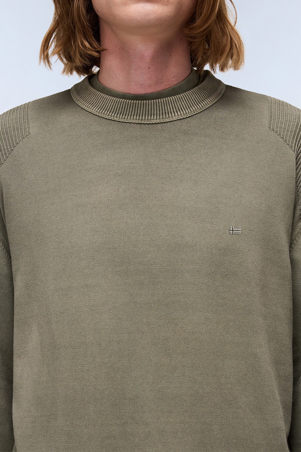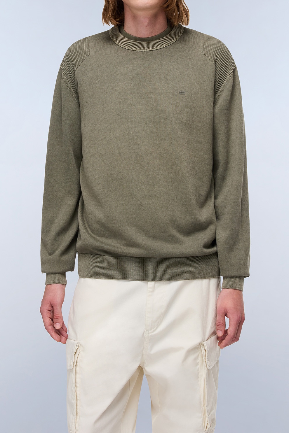 Napapijri, Pulover de bumbac cu decolteu la baza gatului, Kaki, 3XL