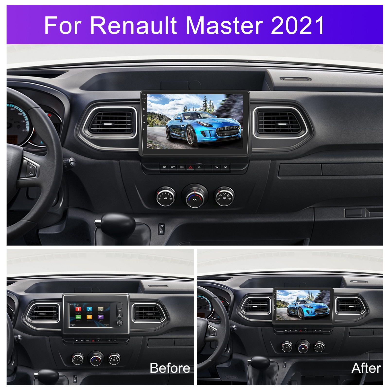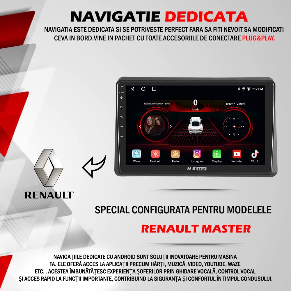 Navigatie Renault Master ( 2020 - 2024 ) dedicata Android, MaxTech®, Android 13, ecran de 10 inch IPS, functii GPS, Carplay, WIFI, RDS, DSP, EQ, Airplay, Mirrorscreen, Youtube, Bluetooth, Waze