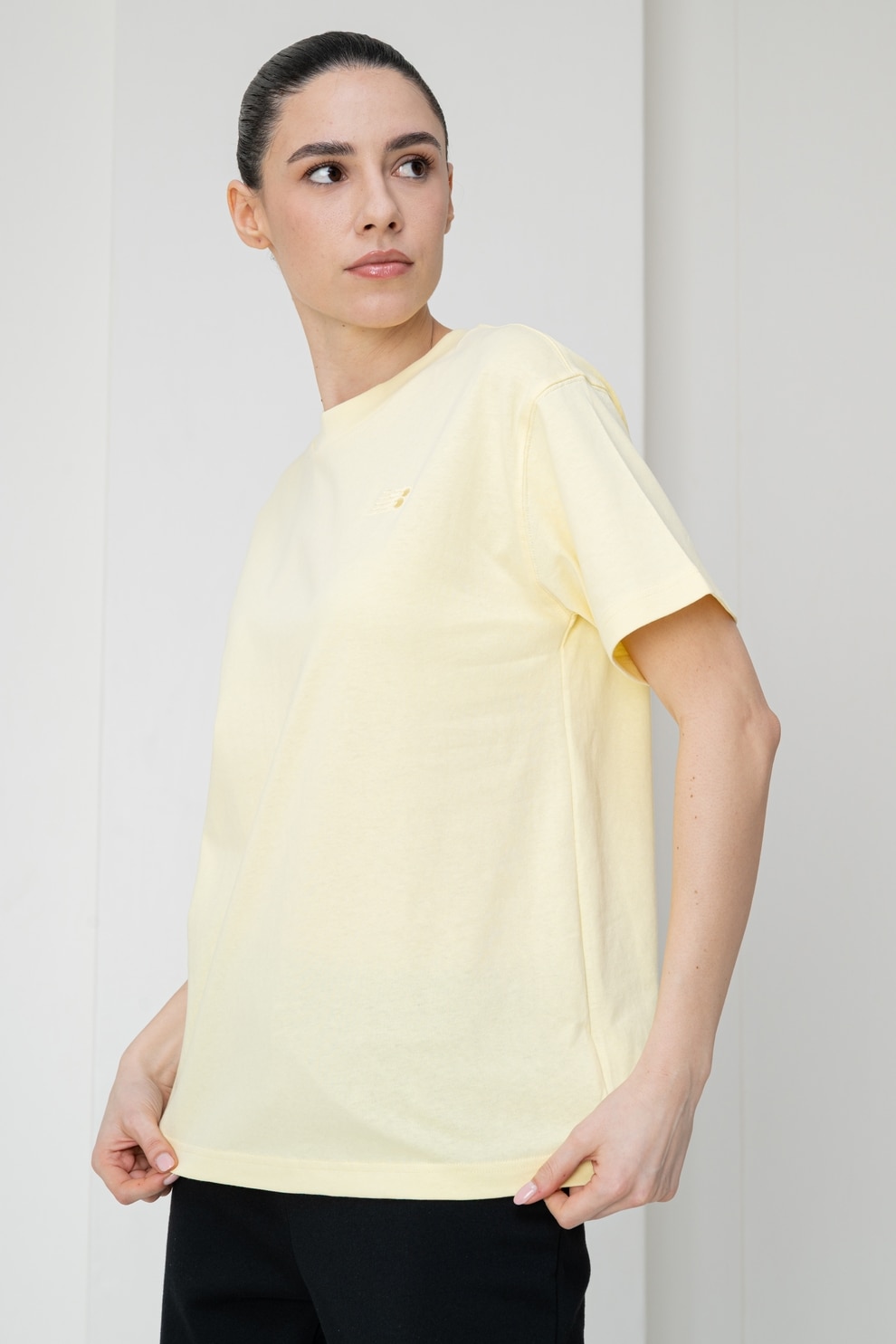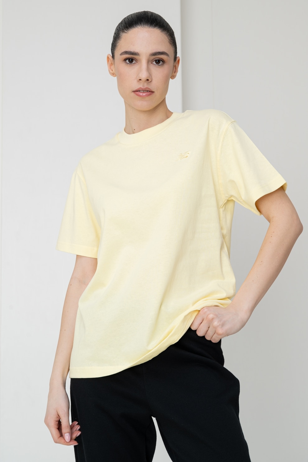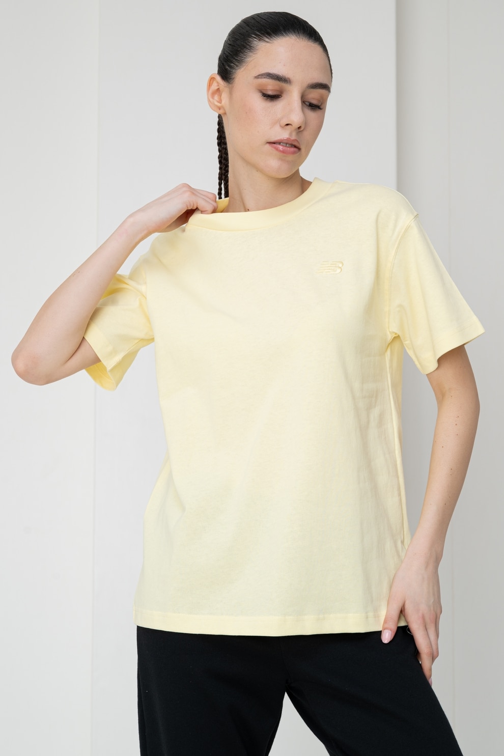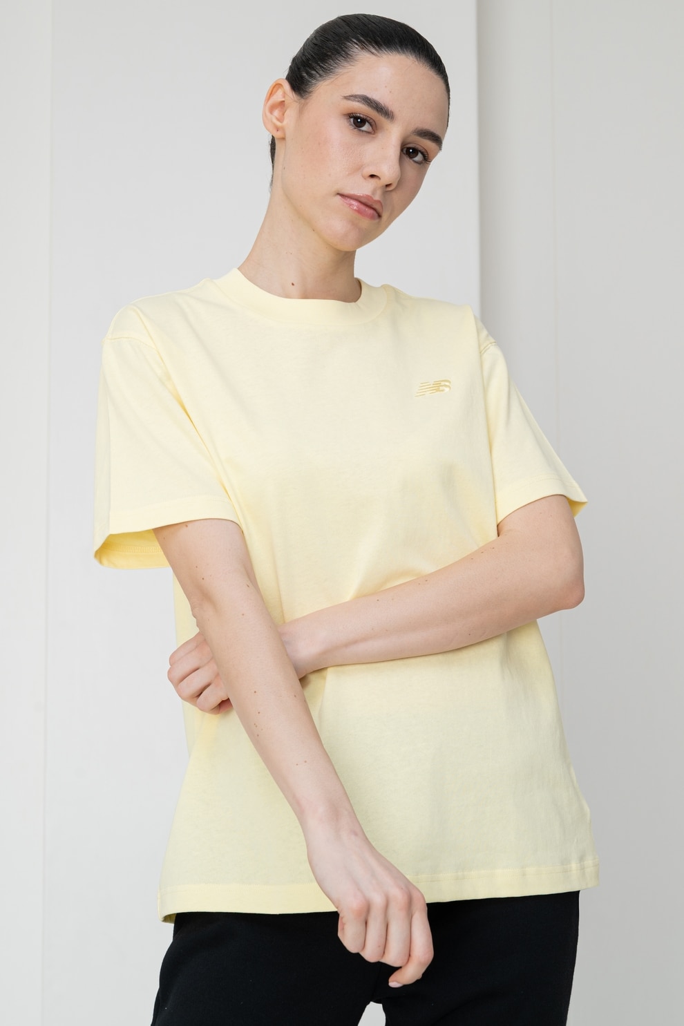 New Balance, Tricou relaxed-fit din bumbac Athletics, Galben pal