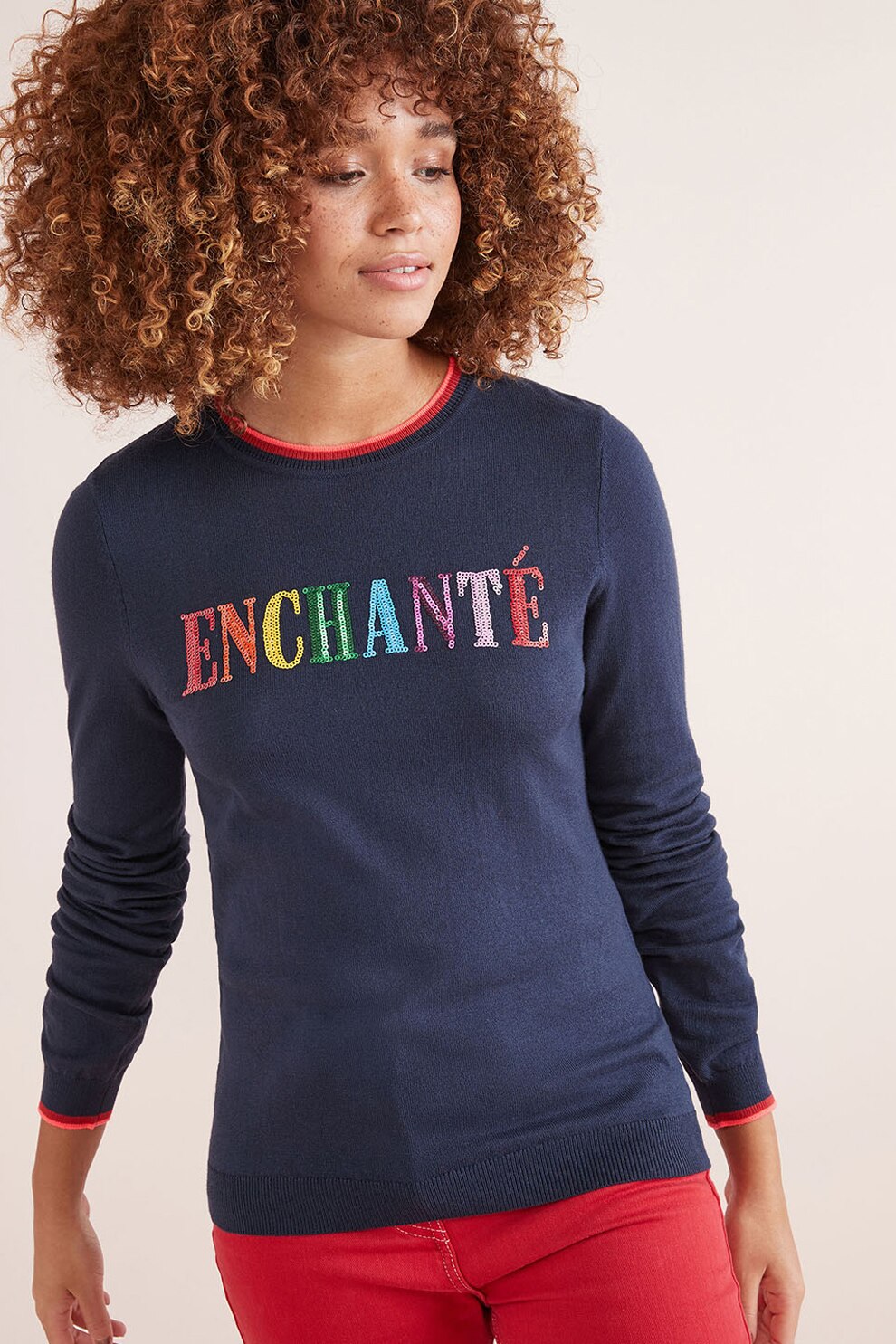 NEXT - Pulover tricotat fin cu aplicatii cu paiete, Albastru inchis, 10