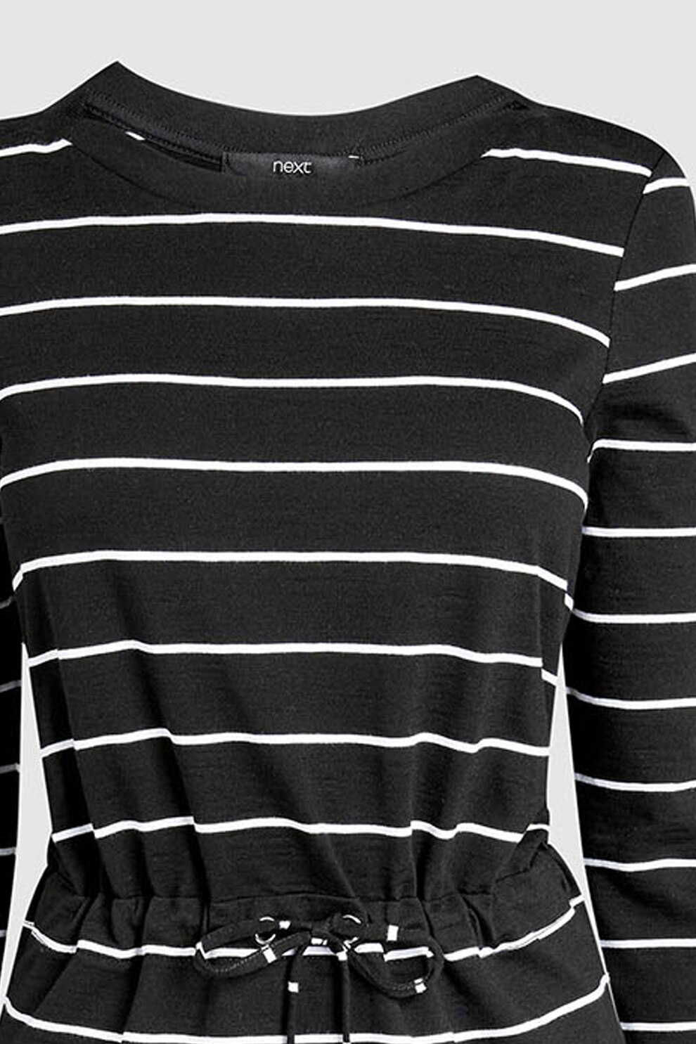 NEXT - Rochie cu model in dungi si snur in talie, Negru/Alb, 20T