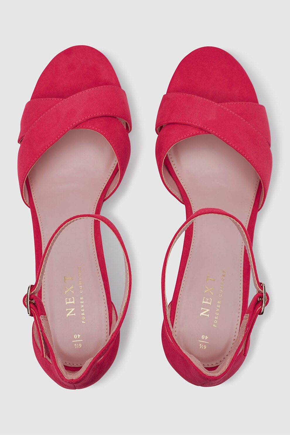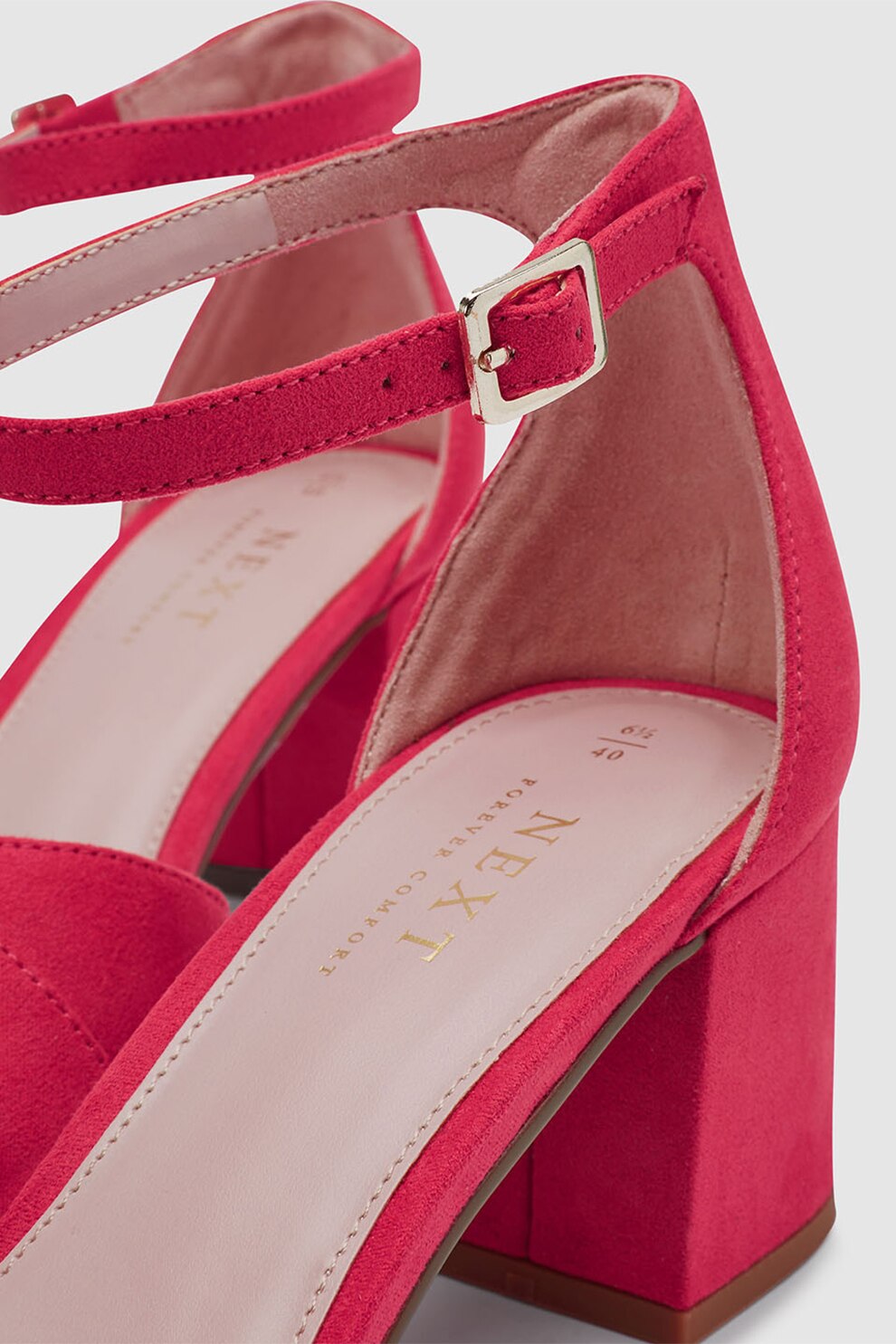 NEXT - Sandale de piele intoarsa sintetica cu bareta pe glezna si toc masiv, Roz aprins, 5.5