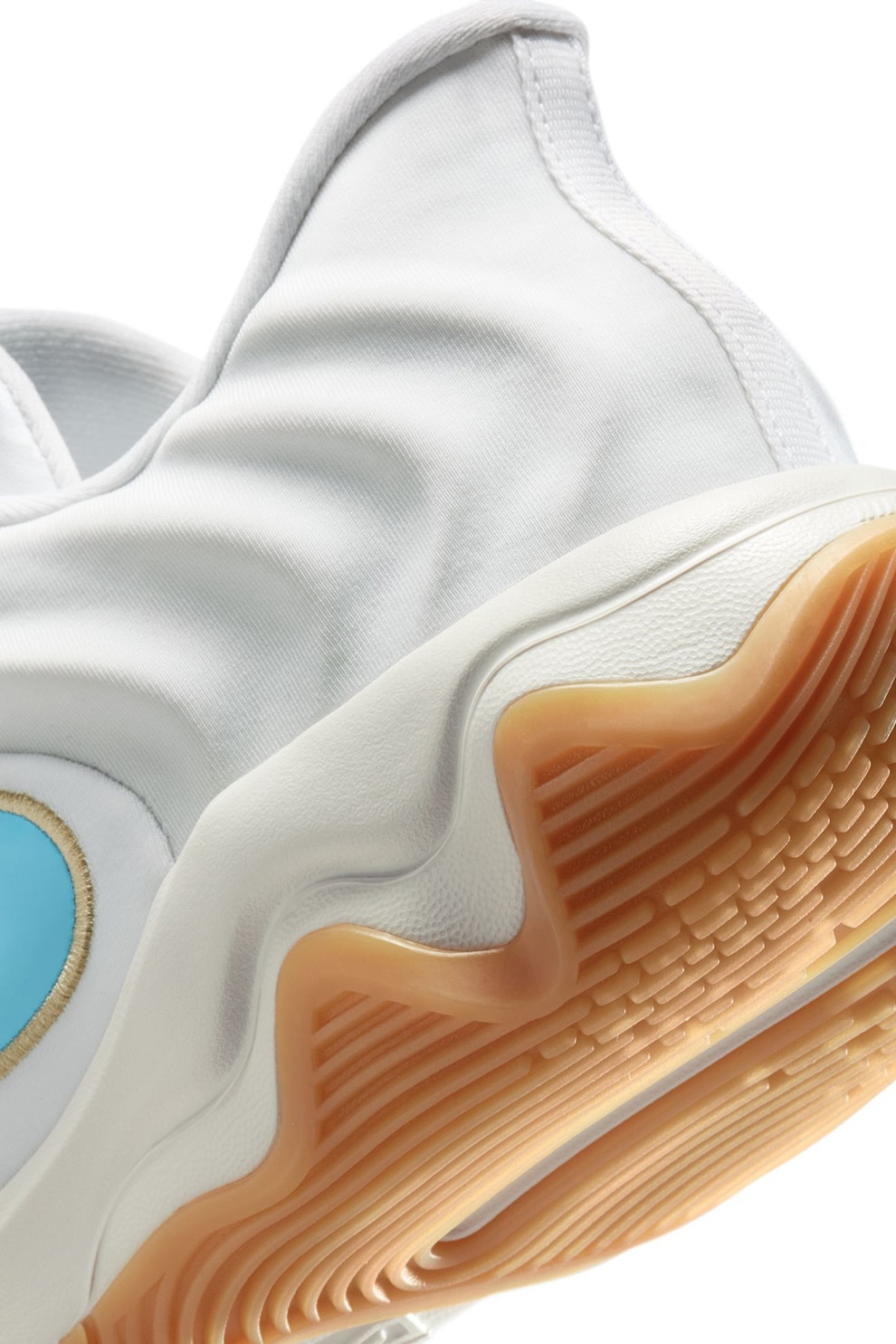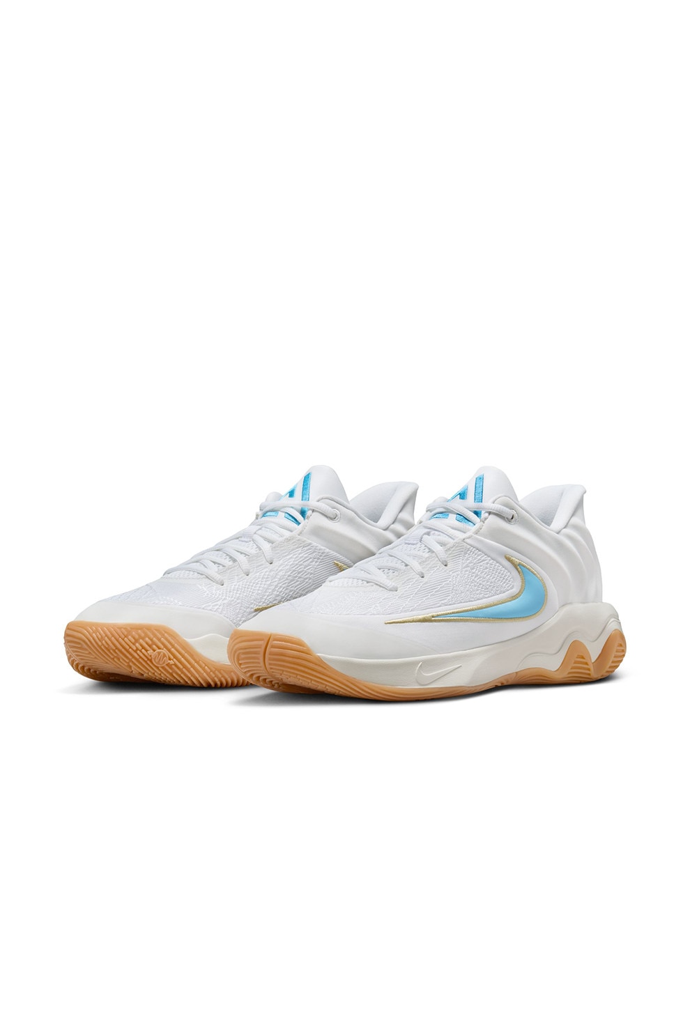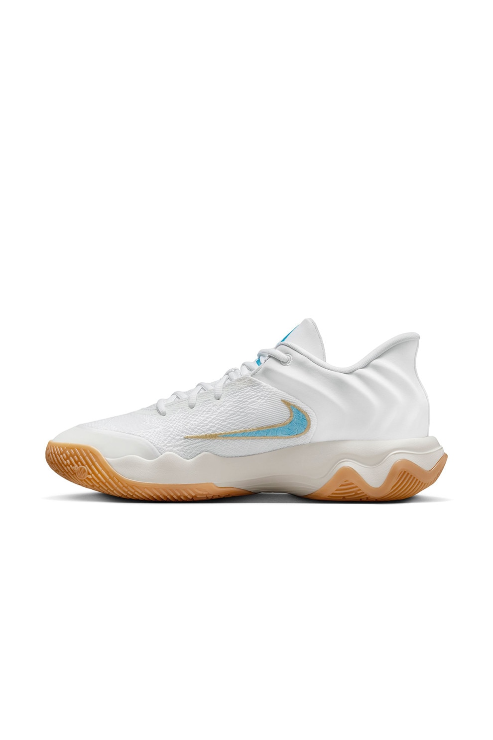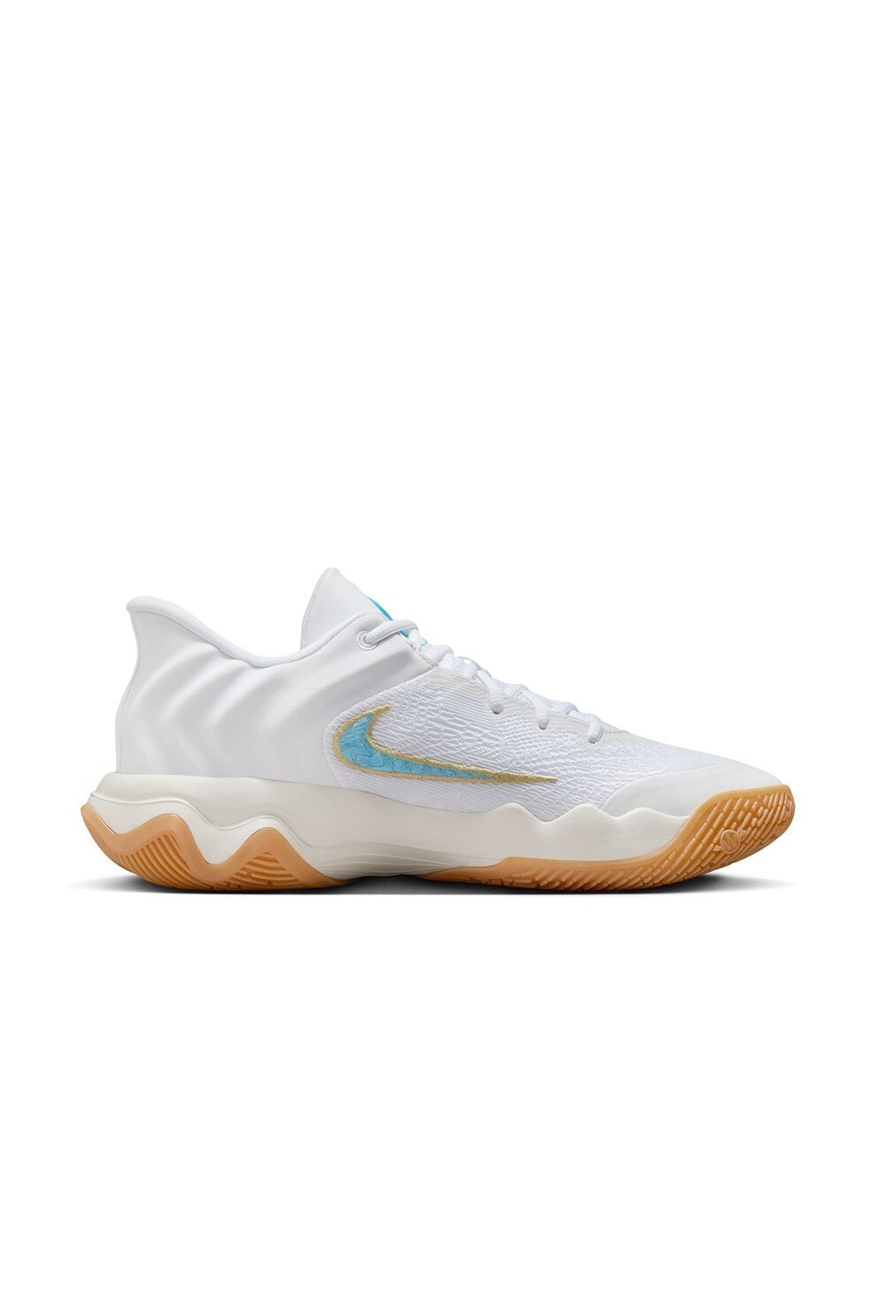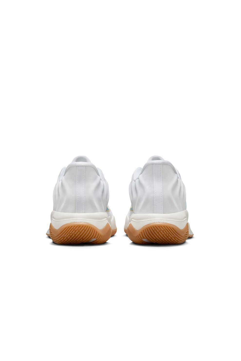 Nike - Pantofi Giannis Immortality 4 cu logo contrastant, pentru baschet, Alb/Albastru aquamarin