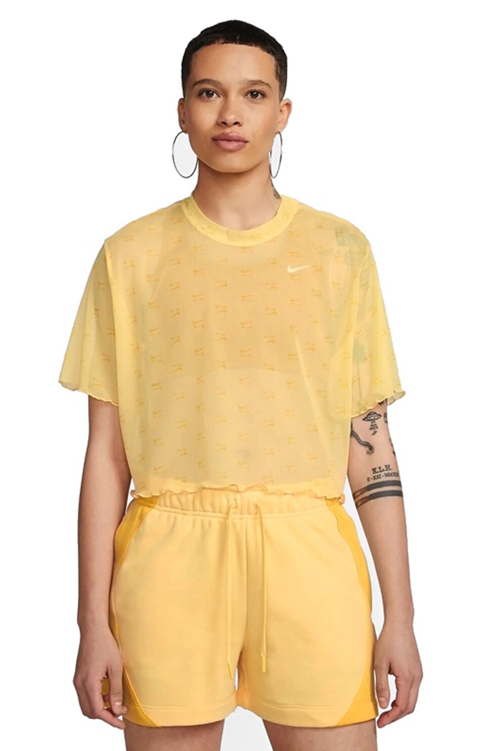 Nike, Tricou crop din plasa cu imprimeu logo Air, Galben pai
