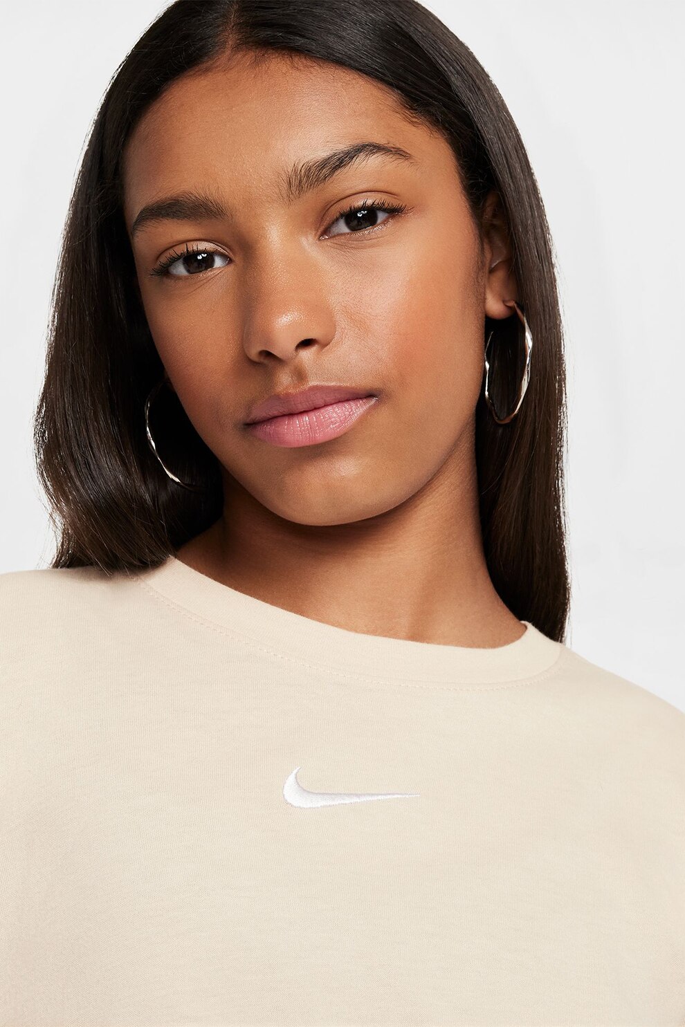 Nike, Tricou din bumbac cu detaliu logo, Maro nisip