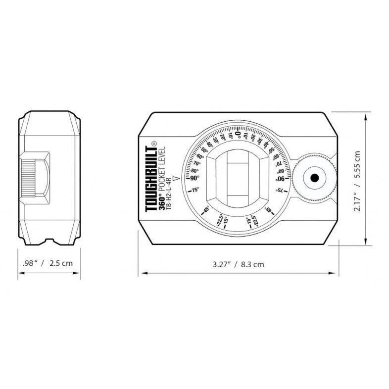 Nivela cu bula de aer, boloboc, ToughBuilt TB-H2-L-4R, cu reglaj 360 grade, cadran gradat, magnet, carcasa turnata