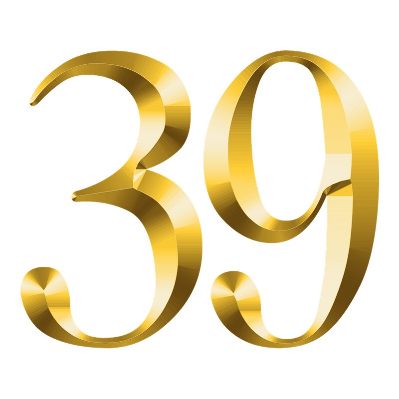Numar cifra 39, Pentru casa, Efect 3D, Numere de usa, cutie postala, apartament, hotel, birou, camera, curte, cafenea, Autoadeziv, Cri-Flo, Culoare Auriu, Inaltime 8 cm