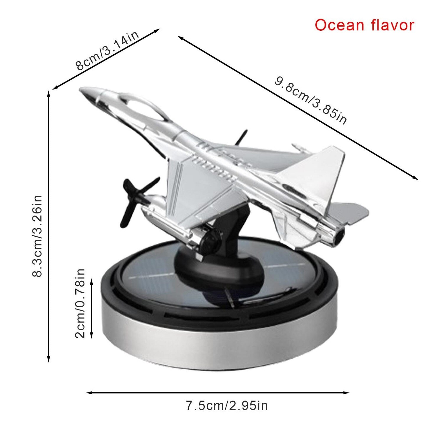 Odorizant auto, model de avion, baza antiderapanta, incarcare solara, aromoterapie disc reutilizabil, cu uleiuri esentiale, gri