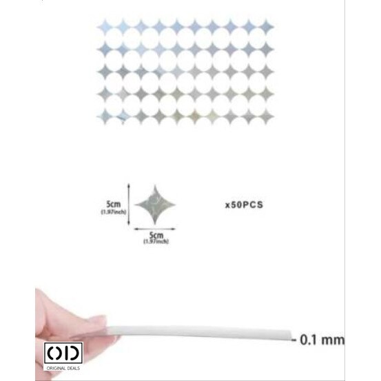 | Continut pachet | 50 x Oglinda Autoadeziva pentru Decor si Design Interior, Model Stelute 4 Colturi, 5 x 5 cm - ORIGINAL DEALS |