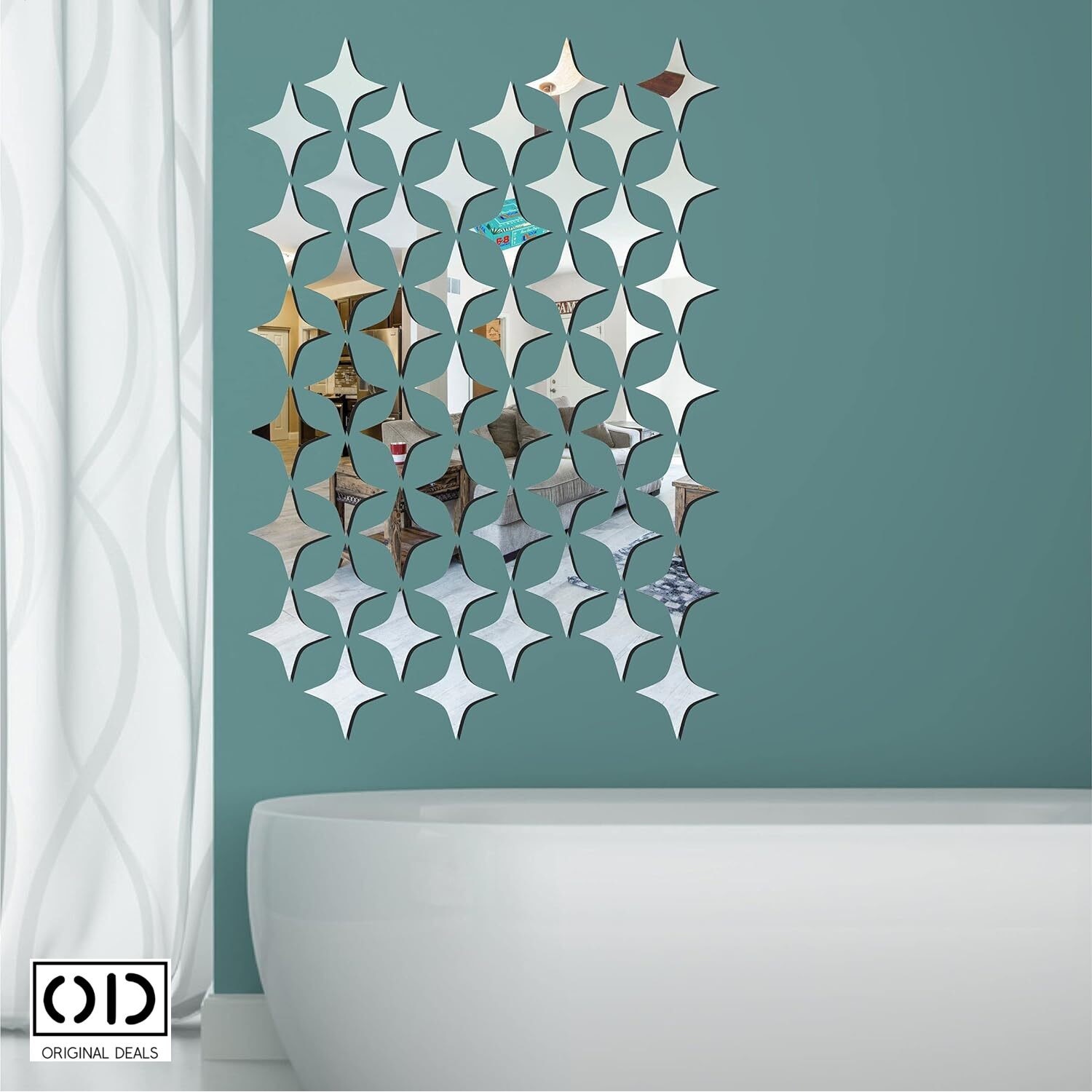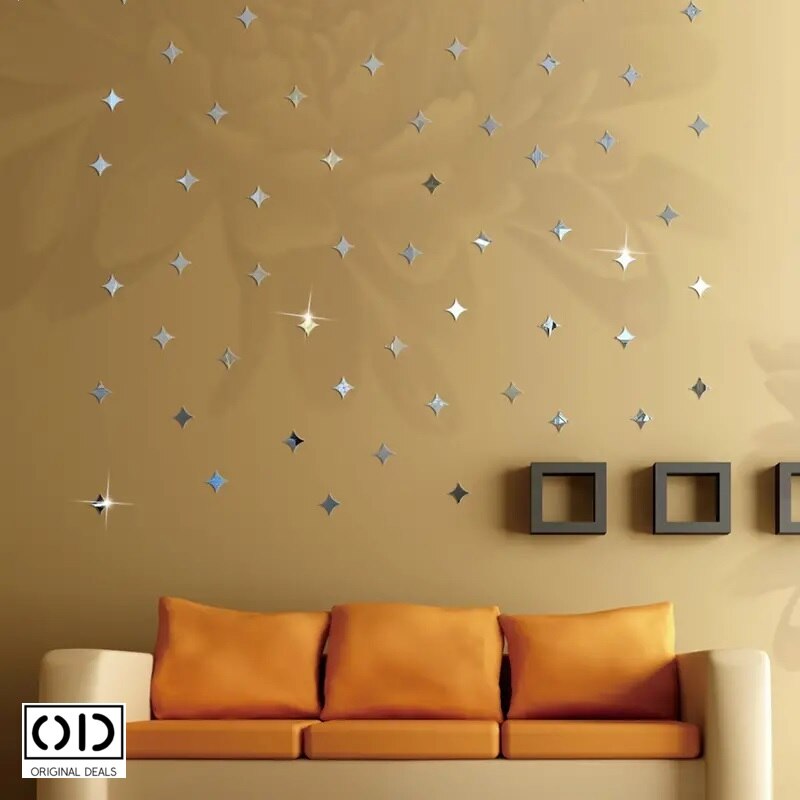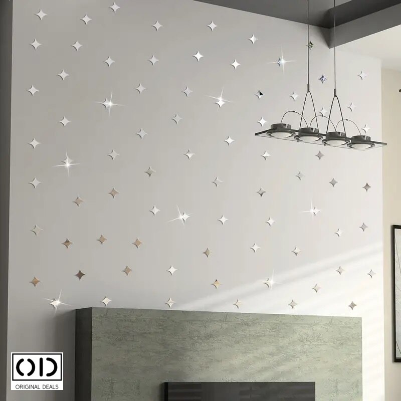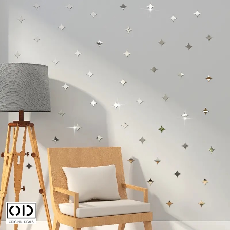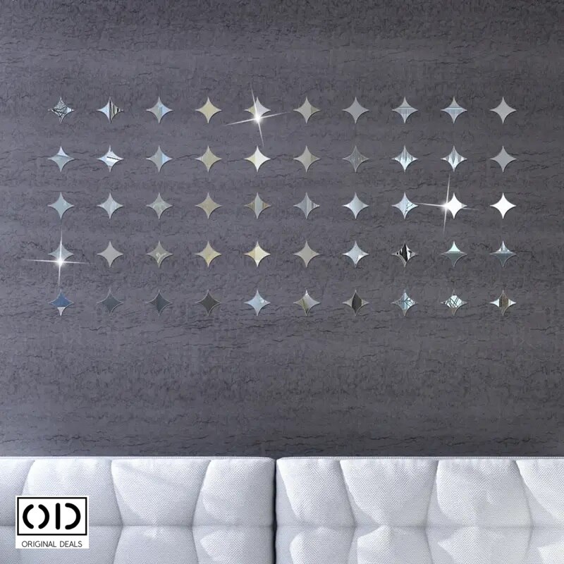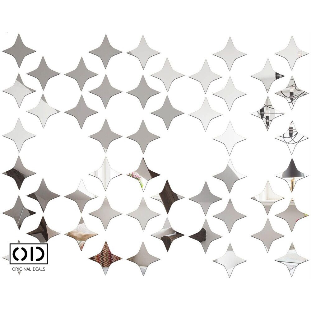 Oglinda Autoadeziva pentru Decor si Design Interior, Model Stelute 4 Colturi, din PVC Acrilic Premium, Set 50 Bucati, ORIGINAL DEALS