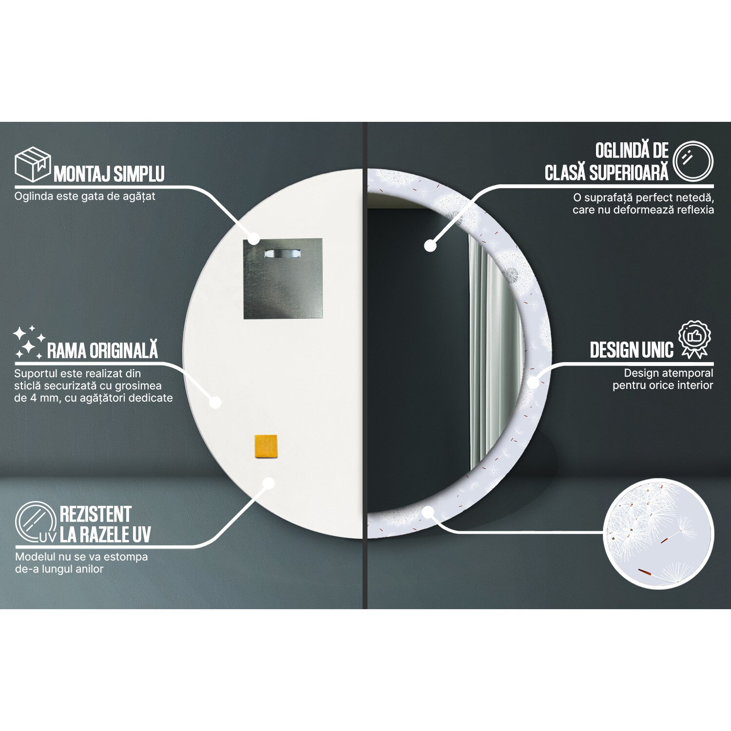 Oglinda Decorativa de Perete, Tulup, Flori Papadie, Rotunda, Albastru, rama, Ø100 cm, 010090550130300012923