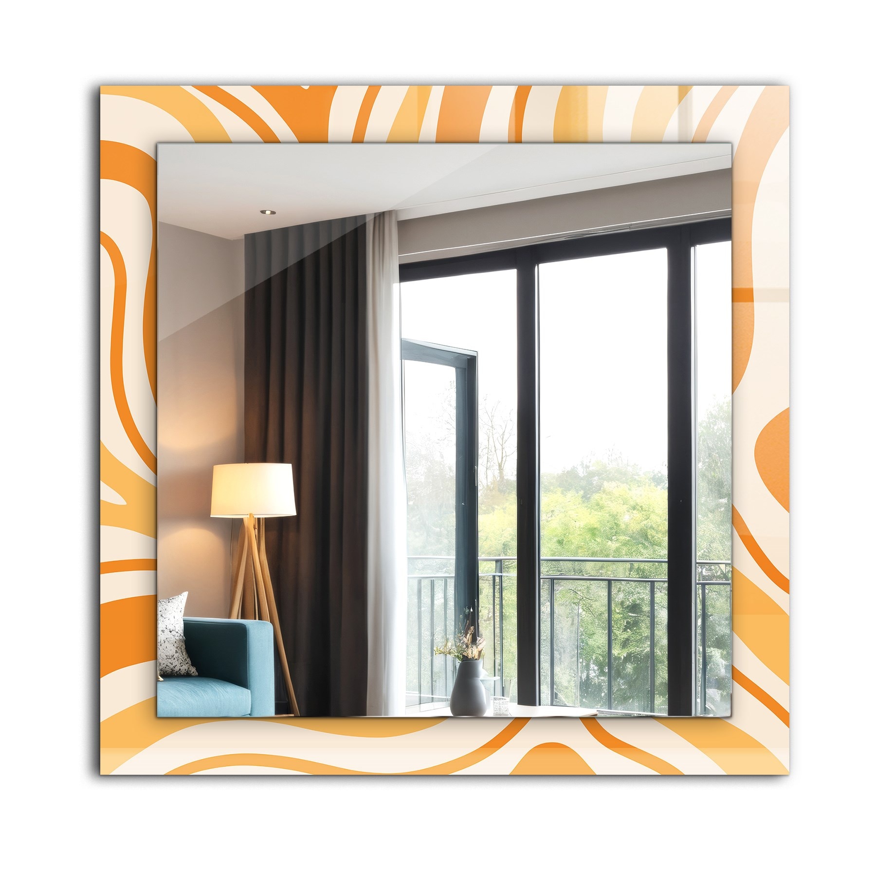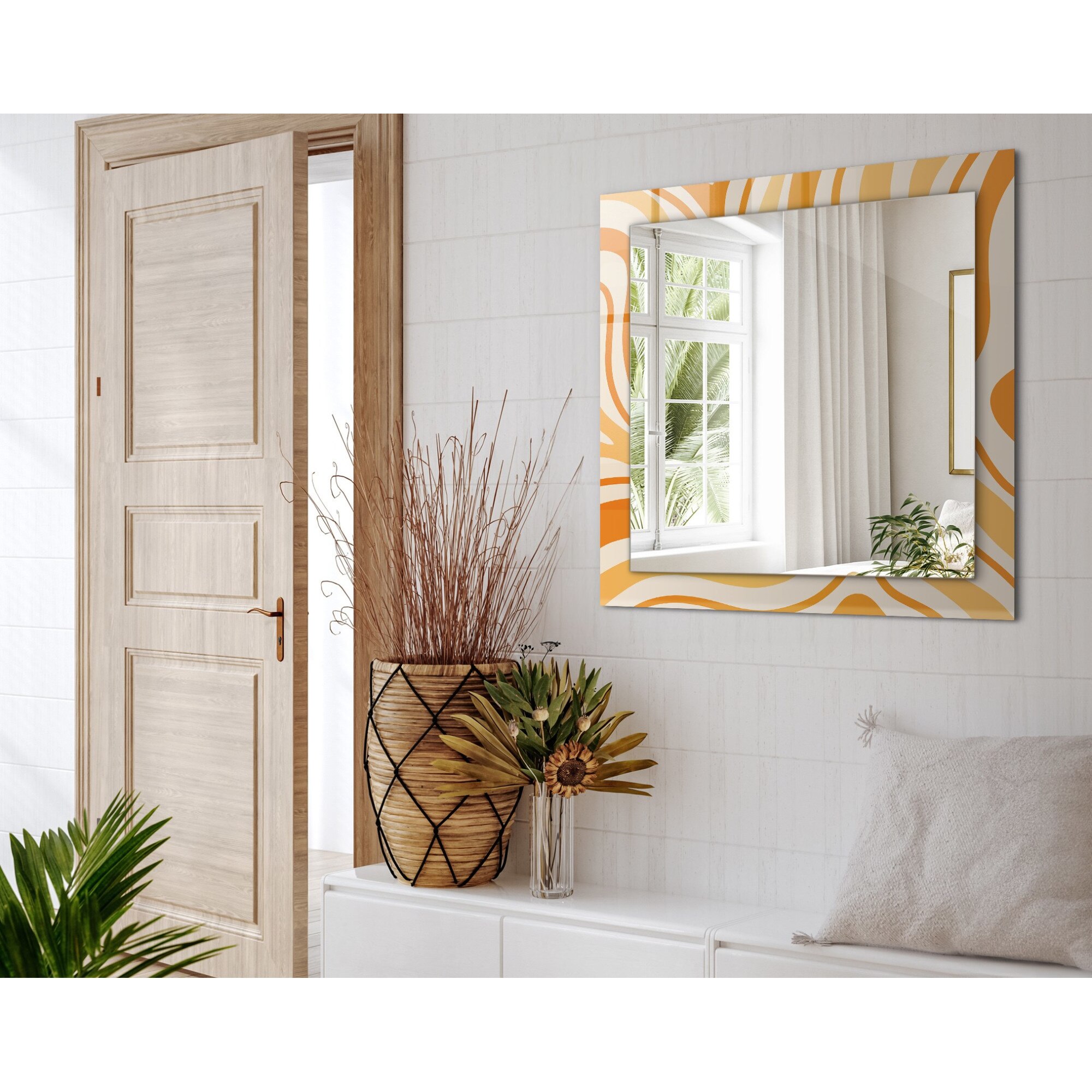 Oglinda dreptunghiulara, Coloray, Tipi sageata cactusi, Negru, 60x60 cm, de perete, Cu rama, 010090550390300012280