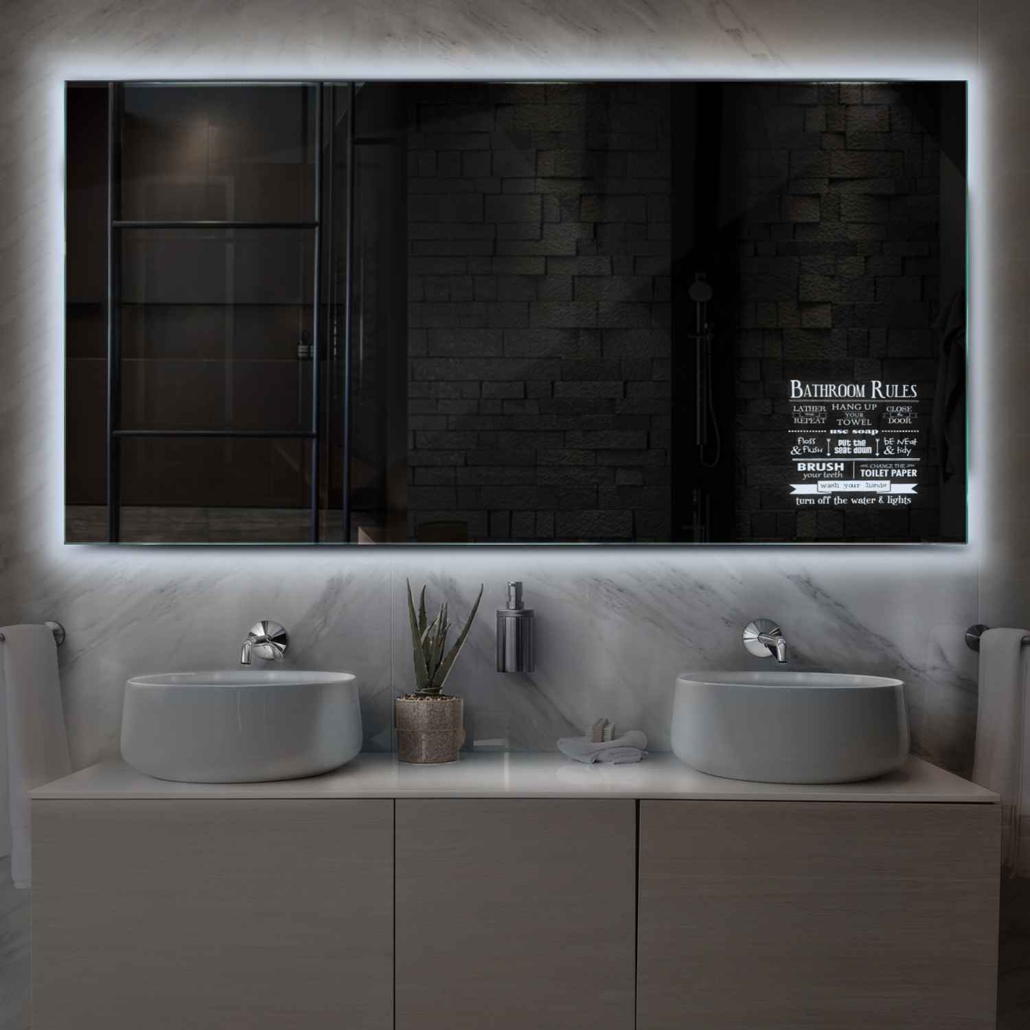 Oglinda LED 120x50 cm, LED Rece 6000K, fara butoane touch, Model Reyze Motivated 5 Orizontala