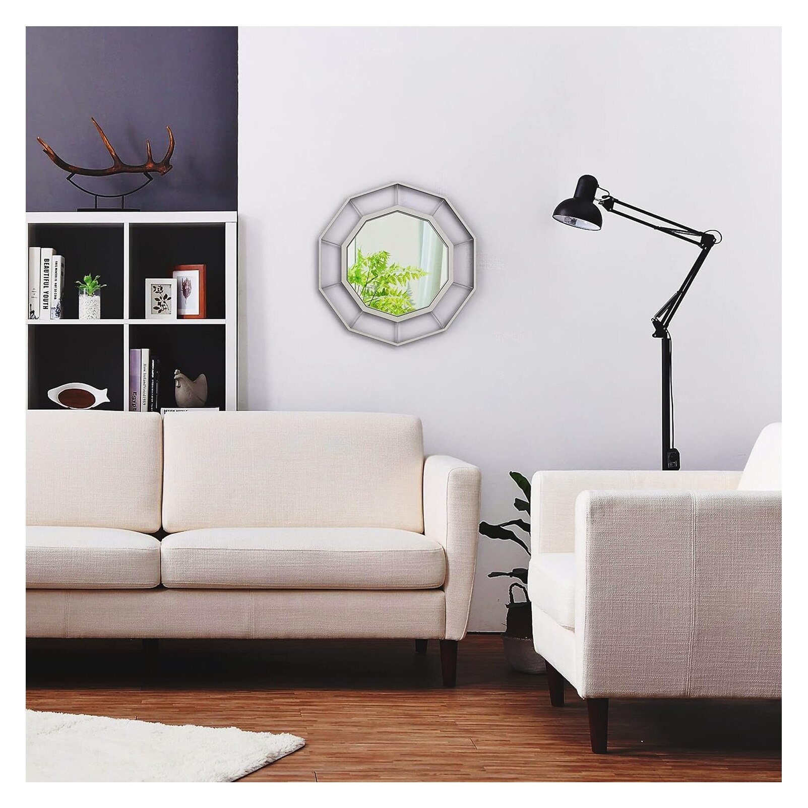 Oglinda rotunda decorativa, de perete, rama argintie, diametru 62 cm
