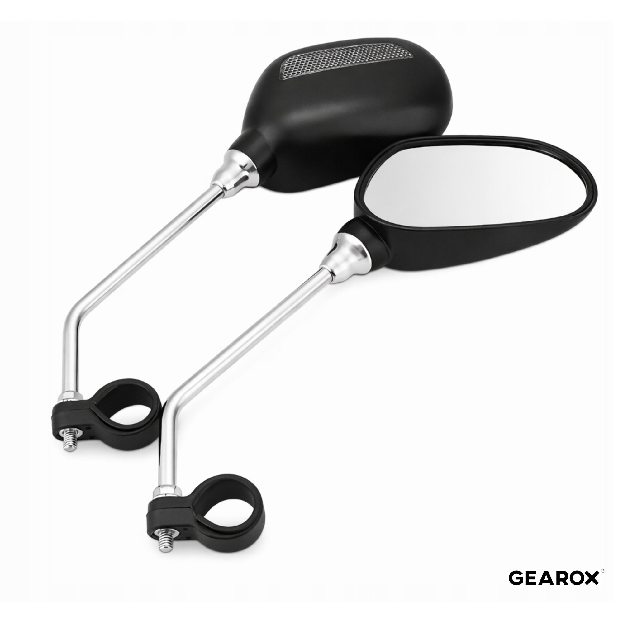 Oglinzi retrovizoare pentru bicicleta, Gearox, Set de 2, 11cm x 7.5cm, Pivotante, Cu reflector, Negre, Setul include: 2 oglinzi (stanga si dreapta), Material: plastic, Nou, Original, Uz