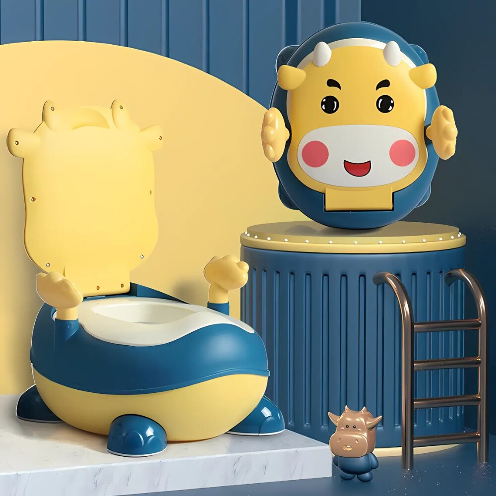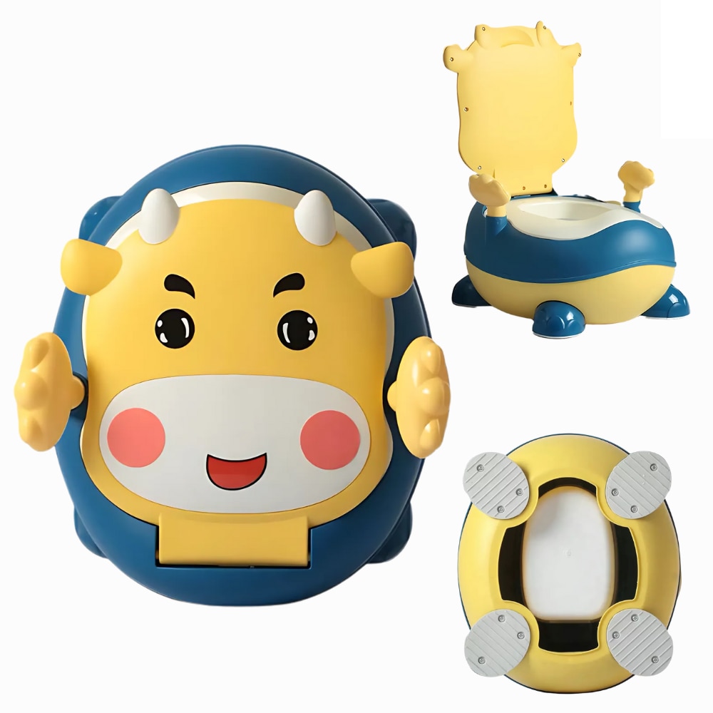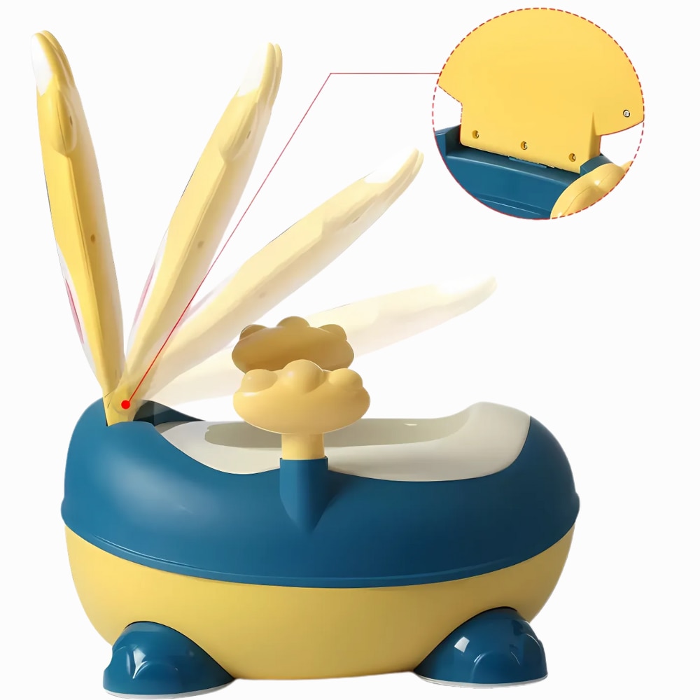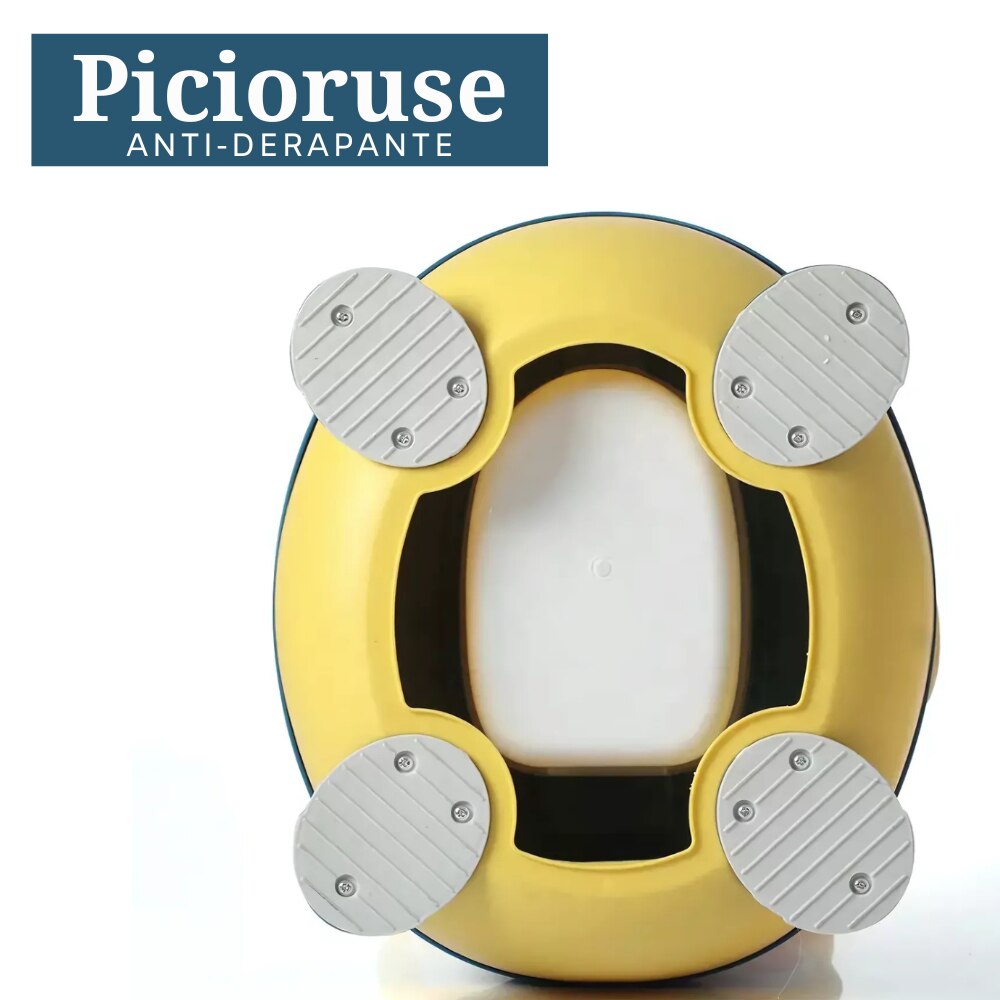 Olita cu manere ergonomice Bukino®, design practic, functional, anti-stropire, material ABS Premium, rezistent, durabil, colac moale detasabil, picioare antiderapante, margini rotunjite, galben/albastru
