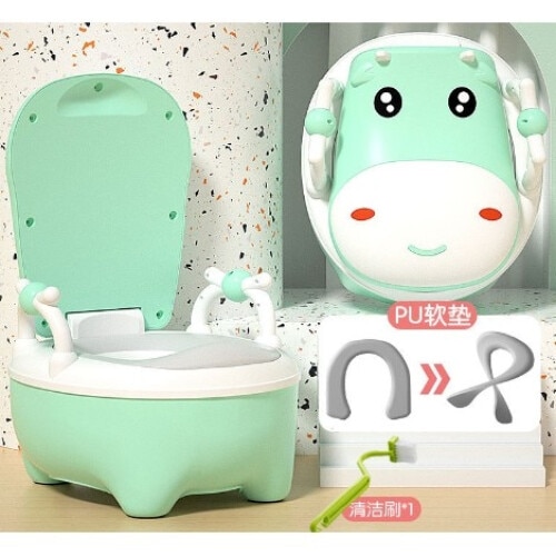 Olita pentru Copii, +1 an, Portabila, Design Vacuta cu Capac, Model Prietenos, Non-Toxic, cu Manere, Compartiment Detasabil, Perie Inclusa, Usor de Curatat, Verde