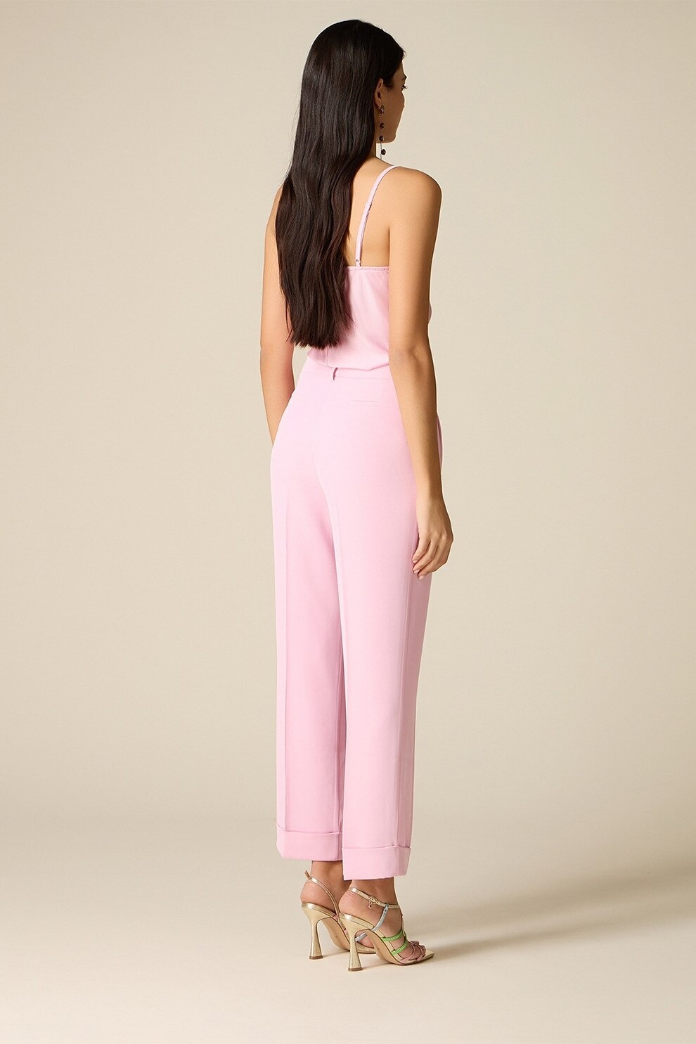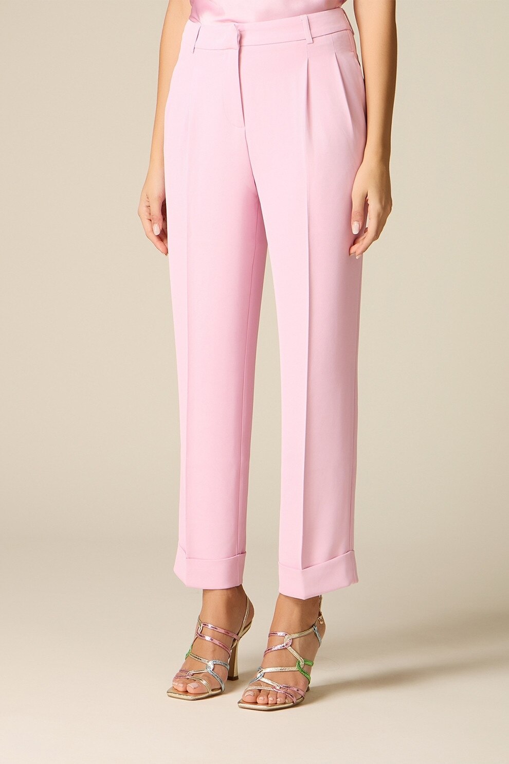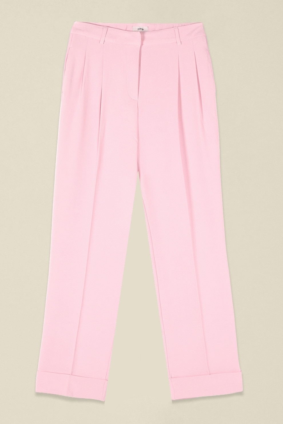 Oltre, Pantaloni cu talie inalta si pliuri, Roz deschis