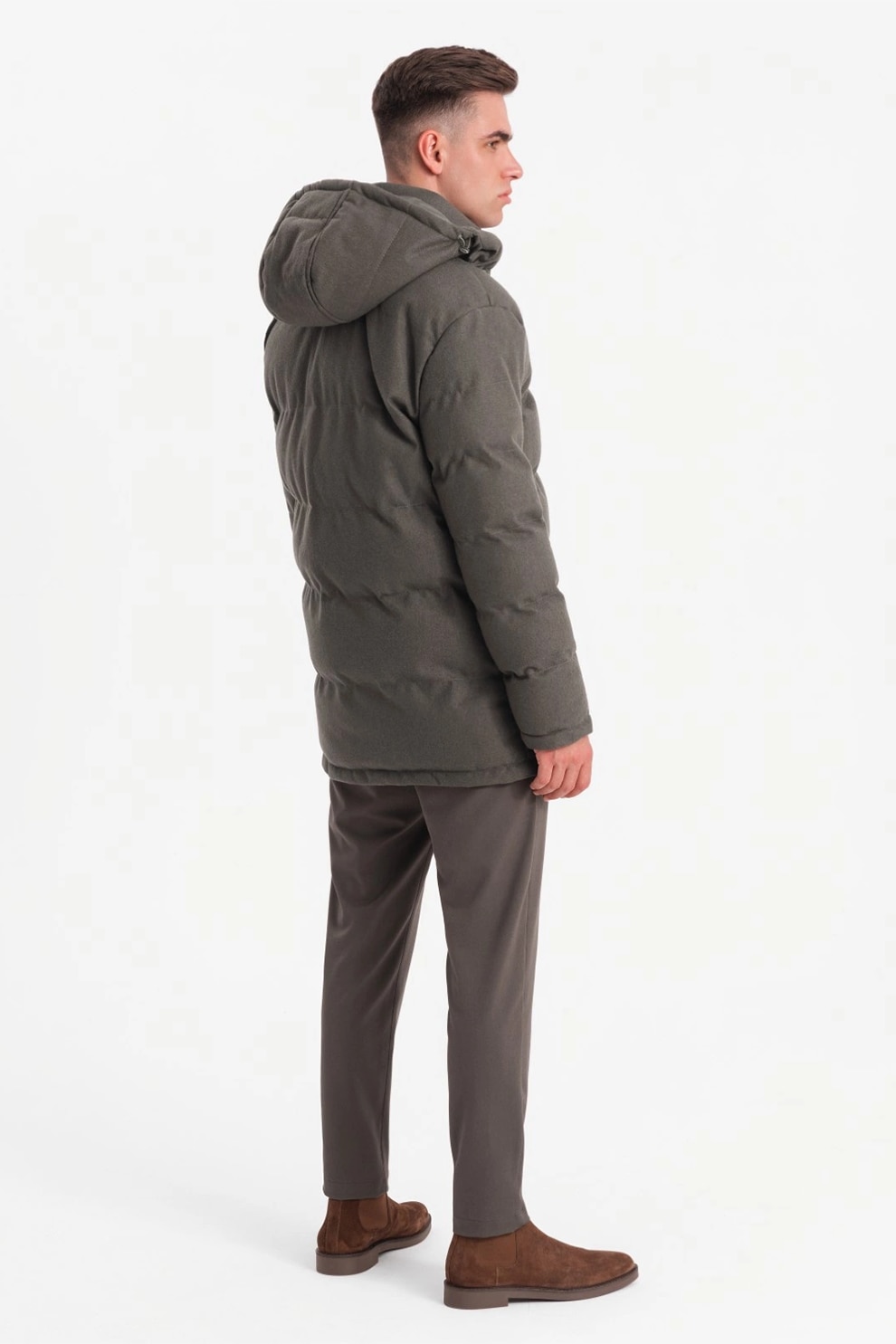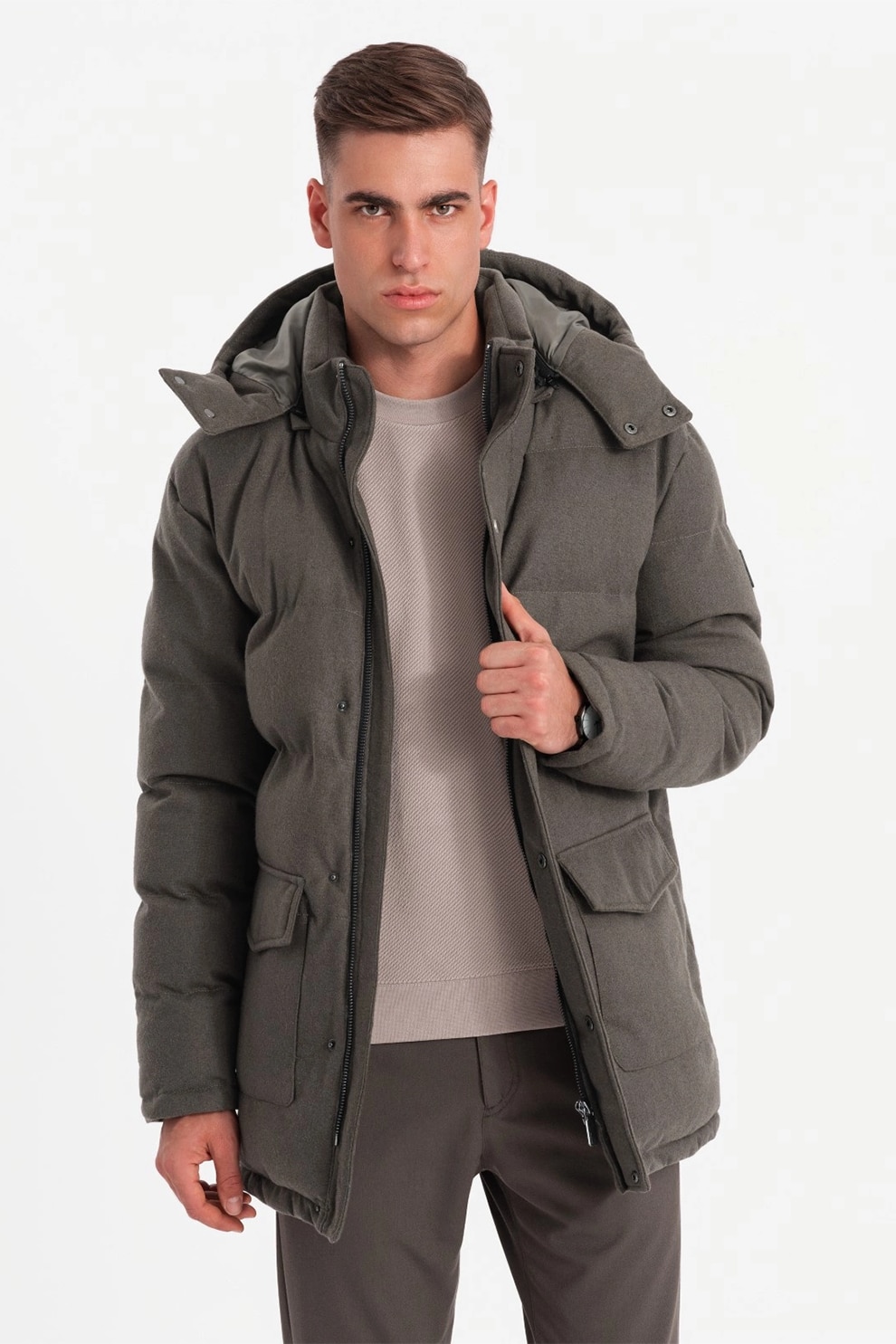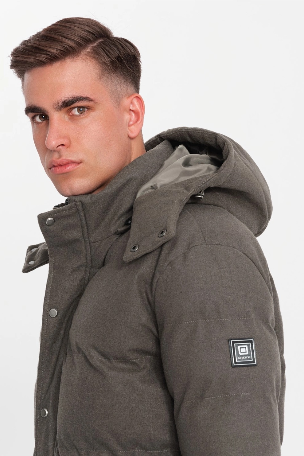 OMBRE, Geaca din amestec de lana cu vatelina si gluga, Kaki