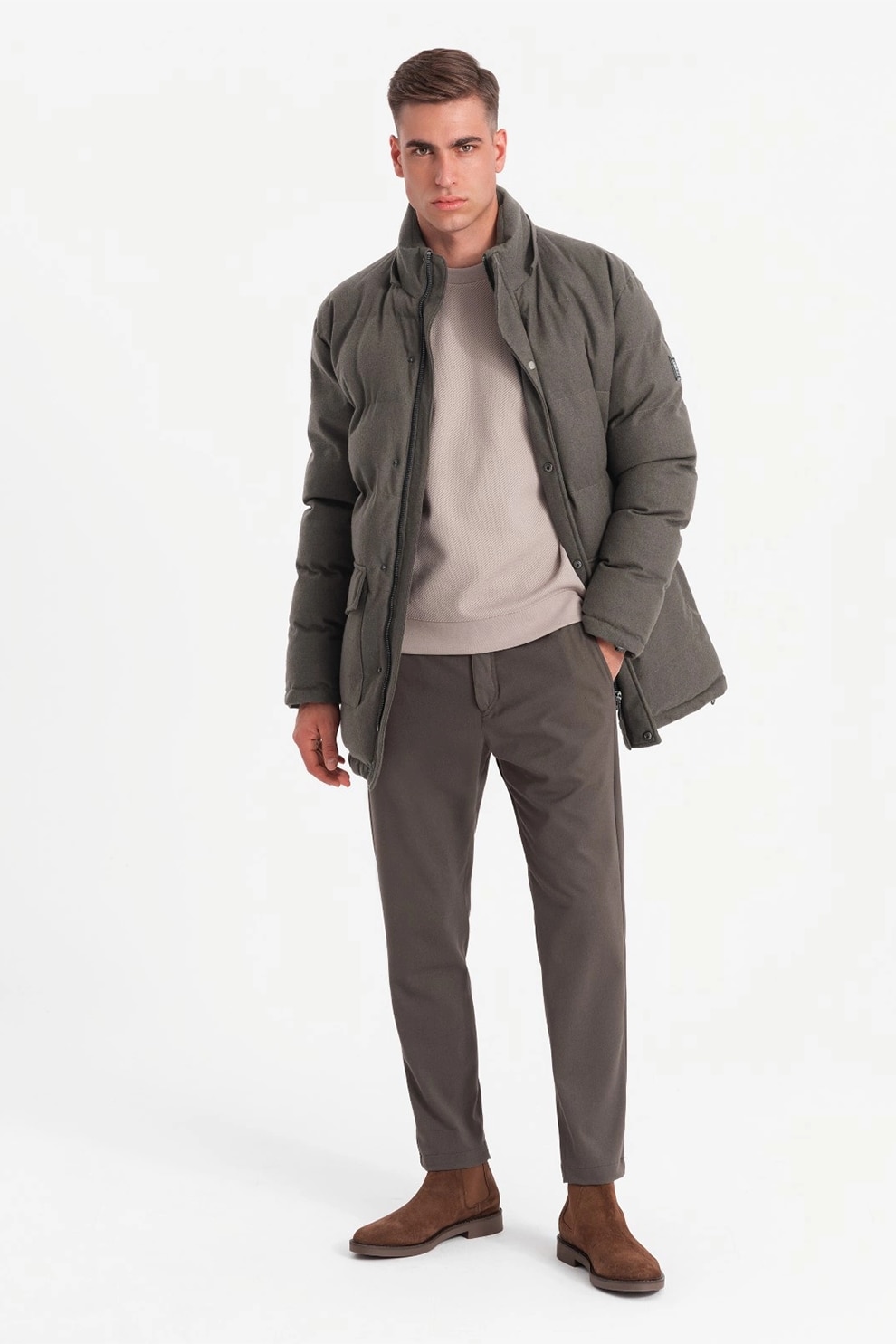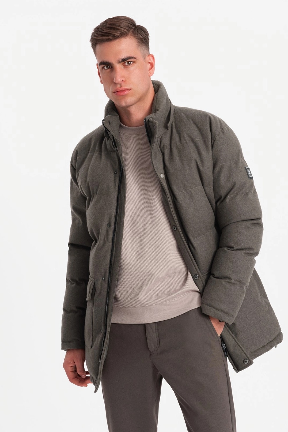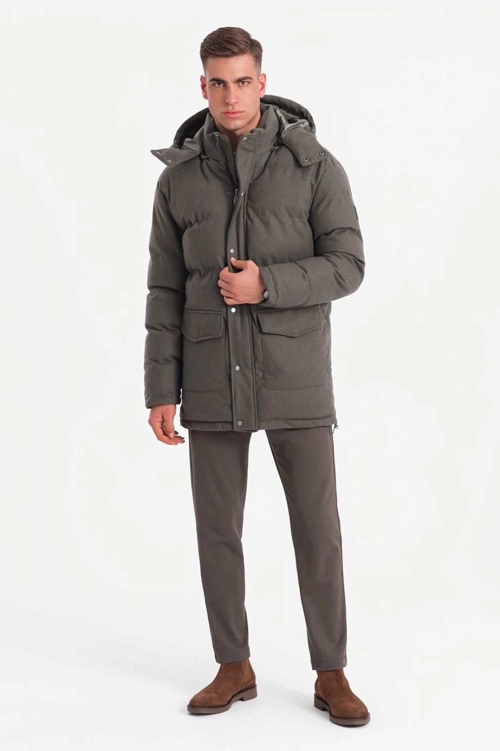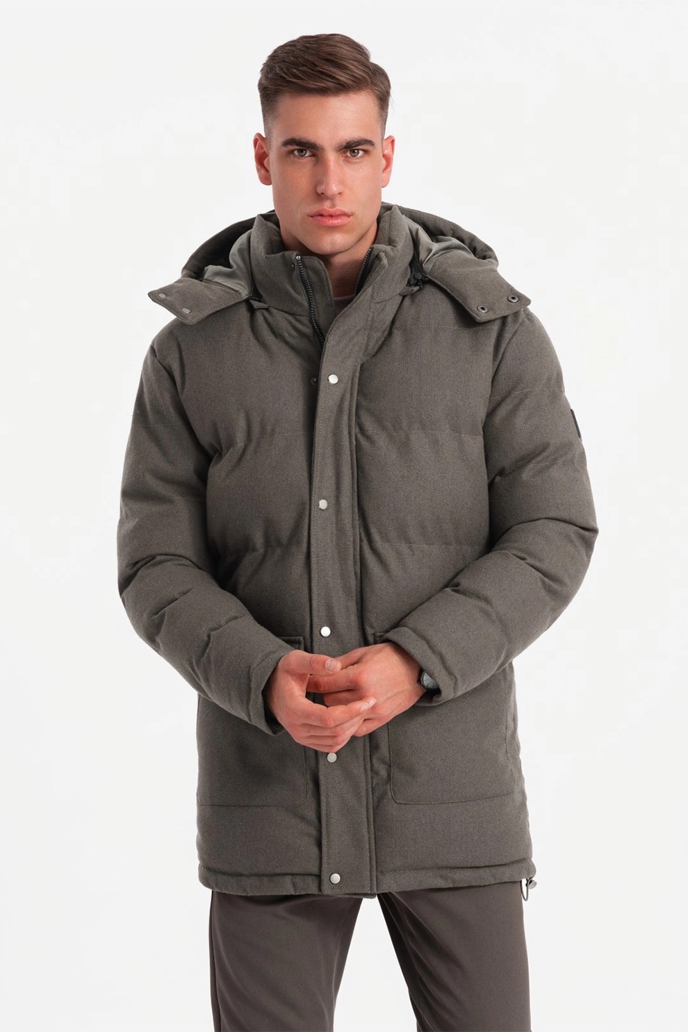 OMBRE, Geaca din amestec de lana cu vatelina si gluga, Kaki
