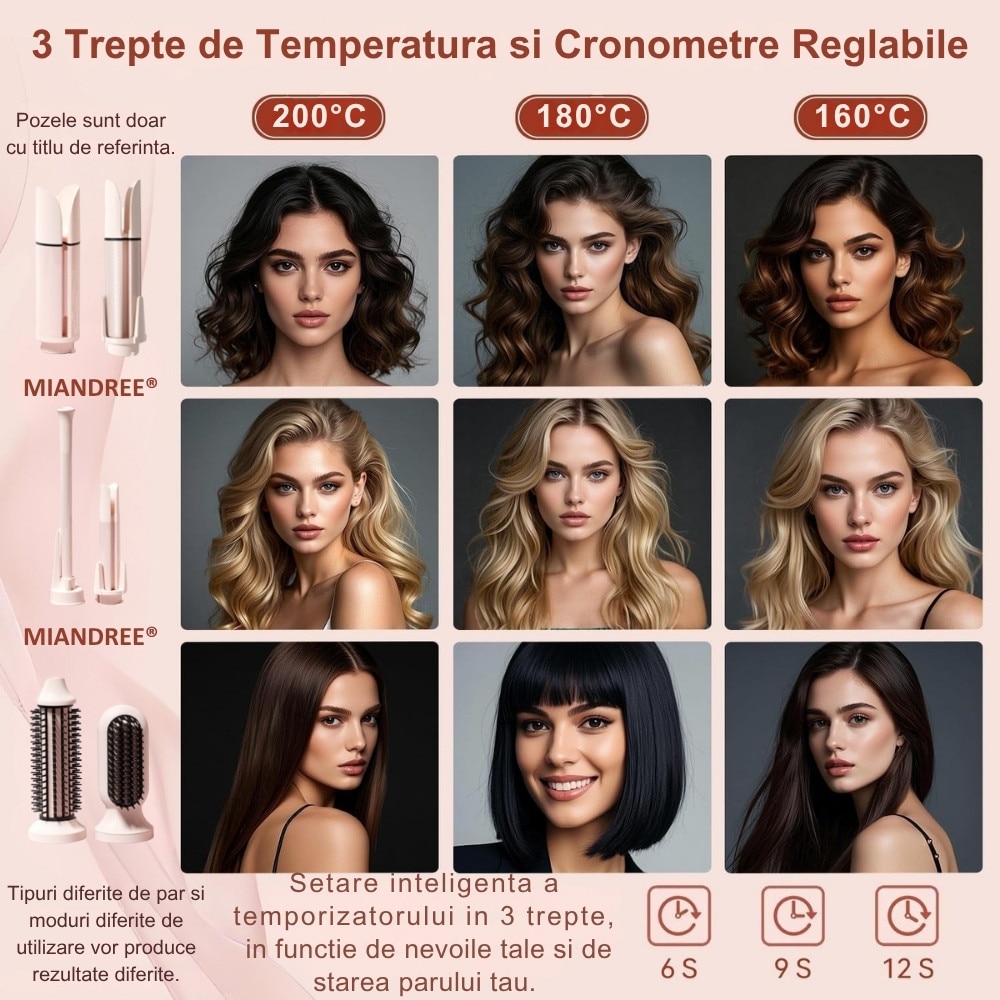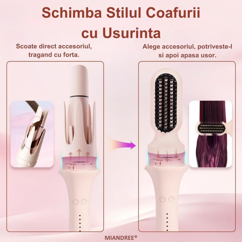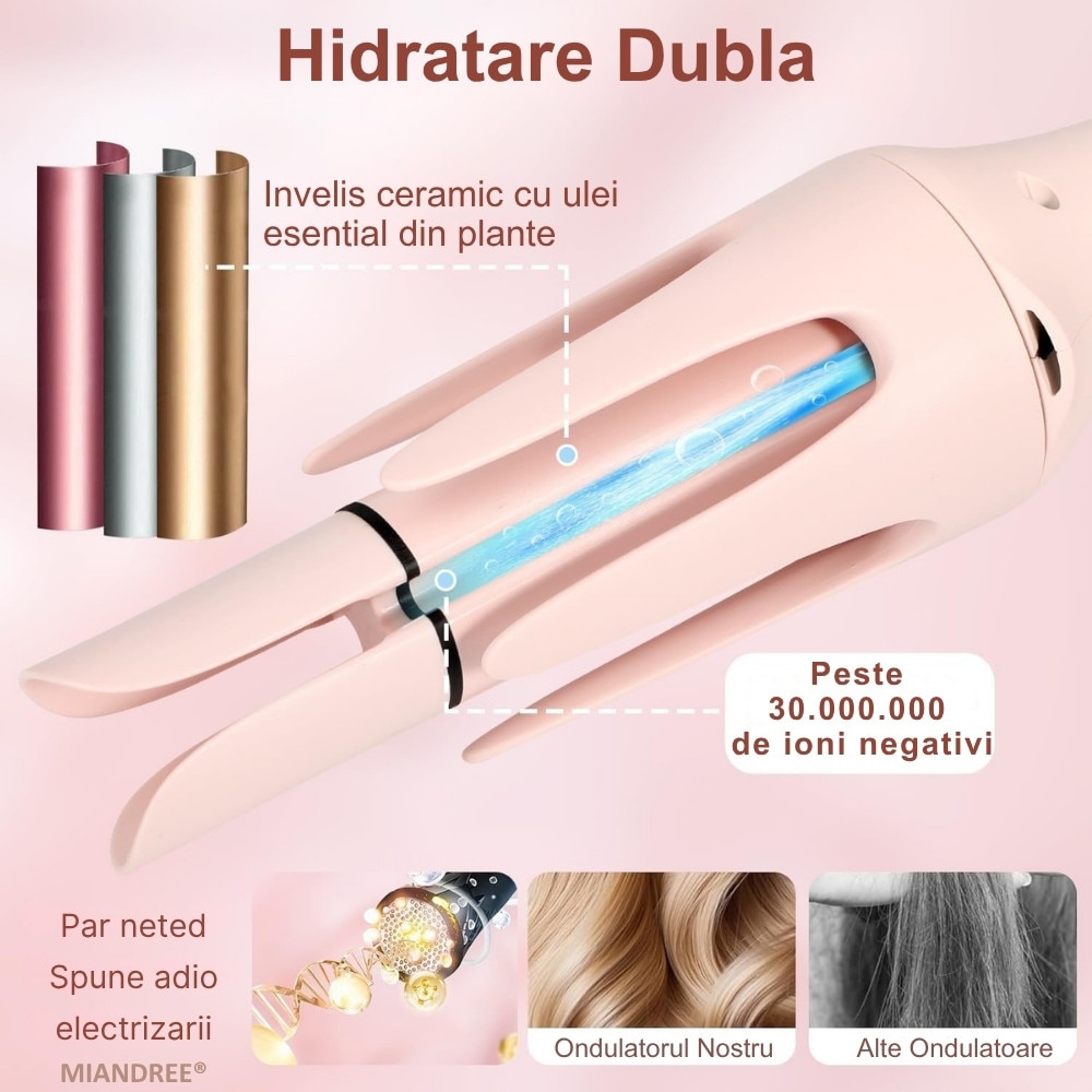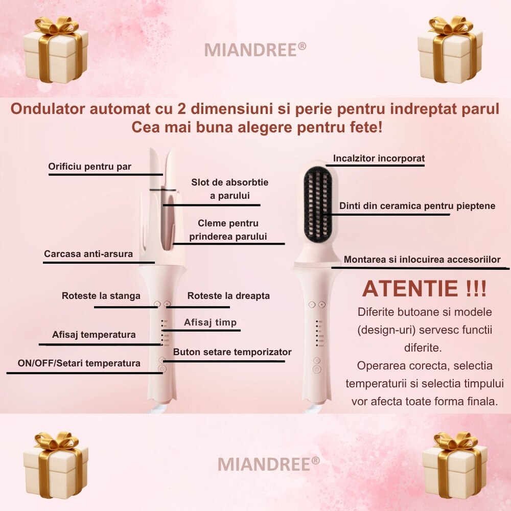 Ondulator Automat Bucle 7 IN 1, MIANDREE®, Invelis Turmalina Ceramica, Protectie Avansata, Potrivit pentru Par Lung si Scurt, 3 Setari de Temperatura, Directii Rotative, Roz, 3 Setari pentru Timer, Alimentare Cablu