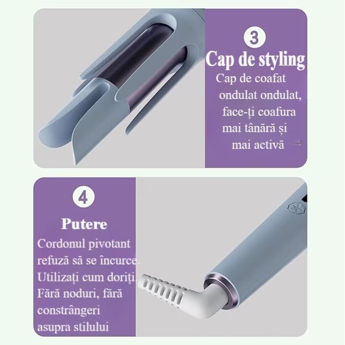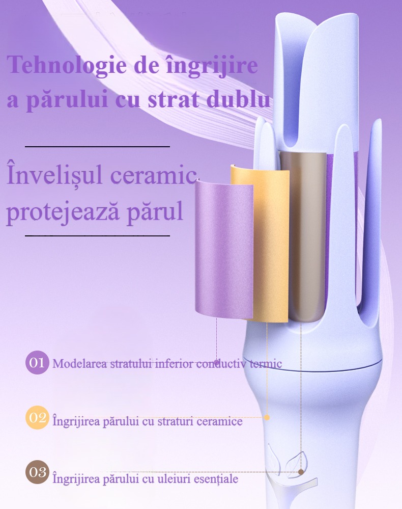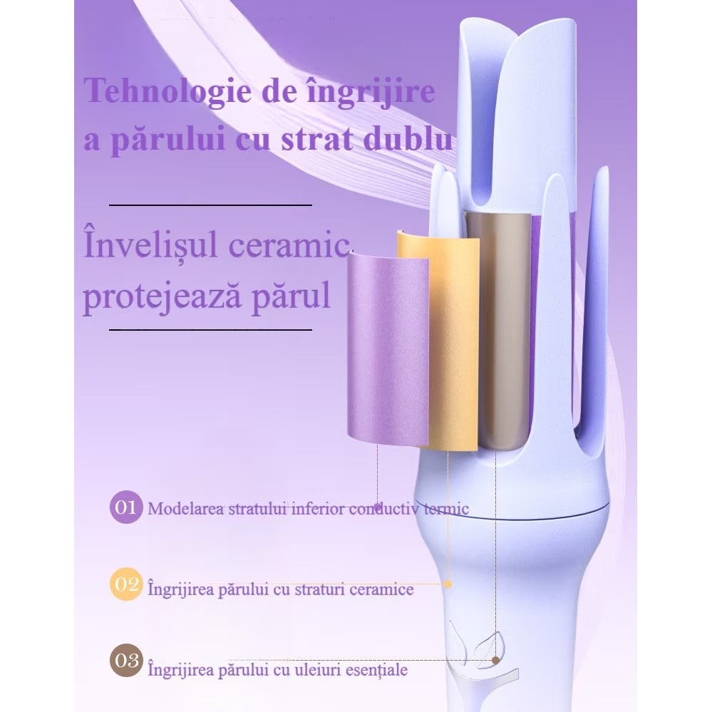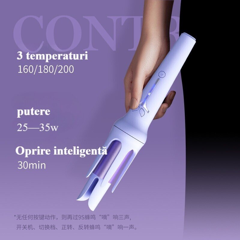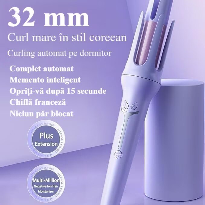 Ondulator par,Ondulator automat, Waves 32 mm, Ingrijirea parului cu strat ceramic, 160°C-200°C, 2 directii de rotatie, Sistem de ondulare inteligenta,Potrivit pentru Orice Tip de Par, Mov deschis