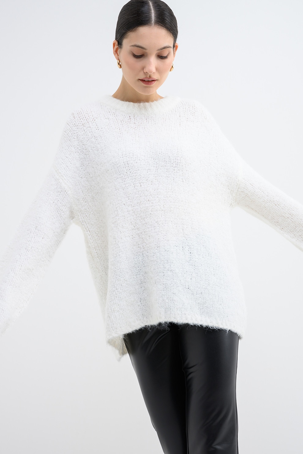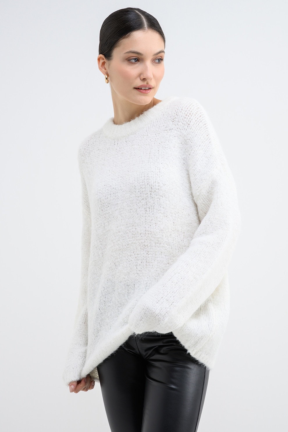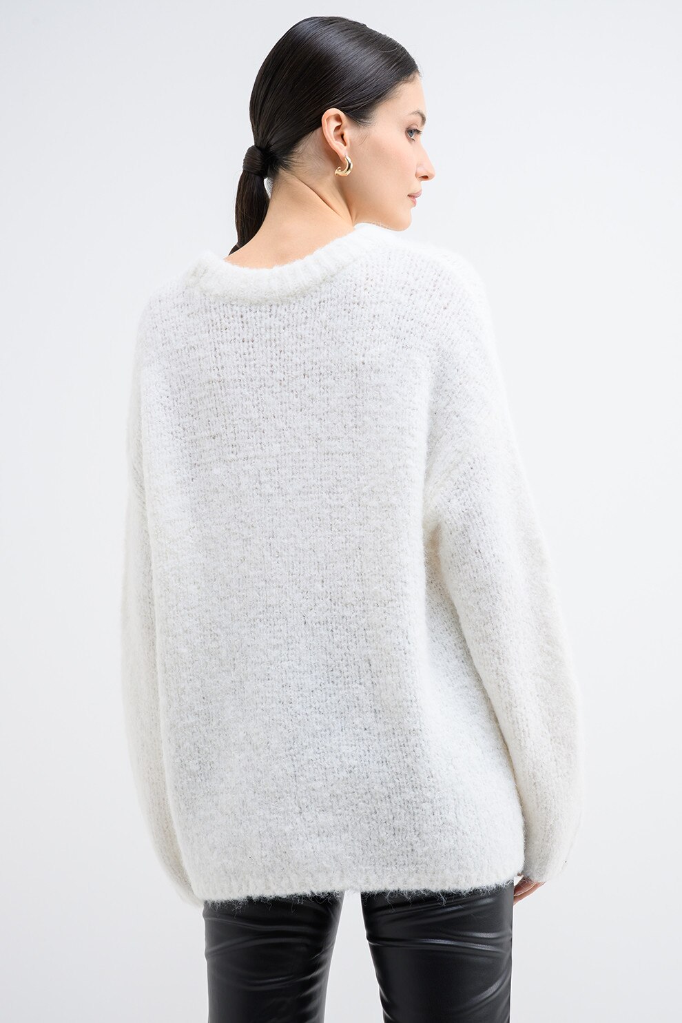 Only, Pulover supradimensionat cu decolteu la baza ggatului, Alb, XL
