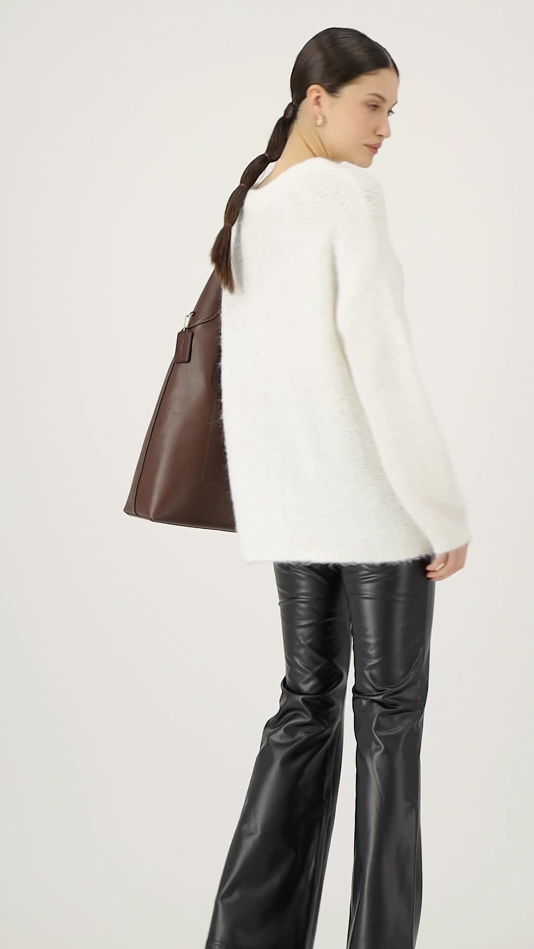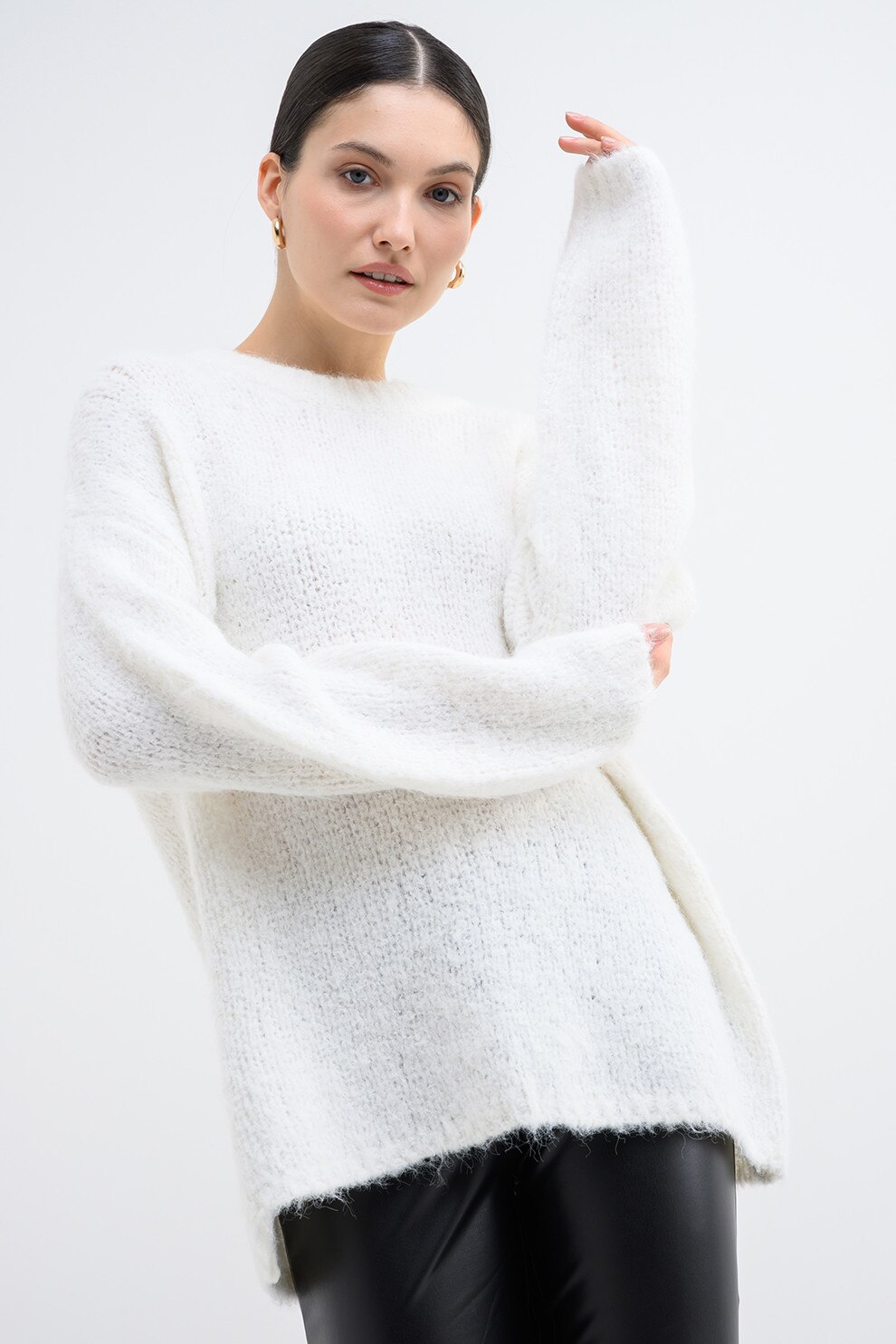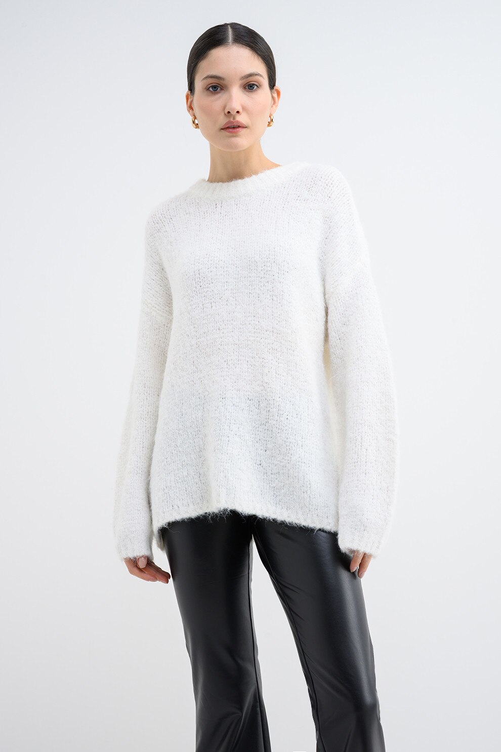 Only, Pulover supradimensionat cu decolteu la baza ggatului, Alb, XL