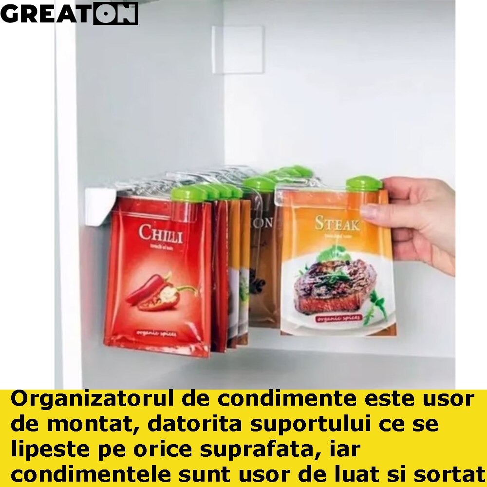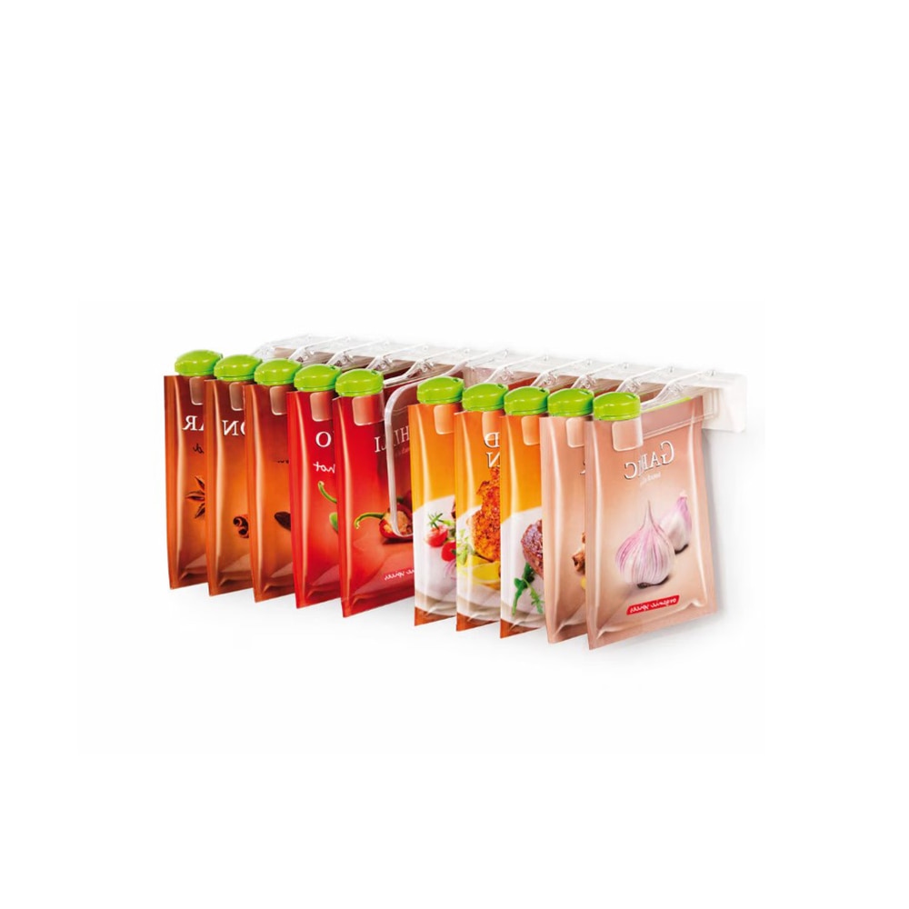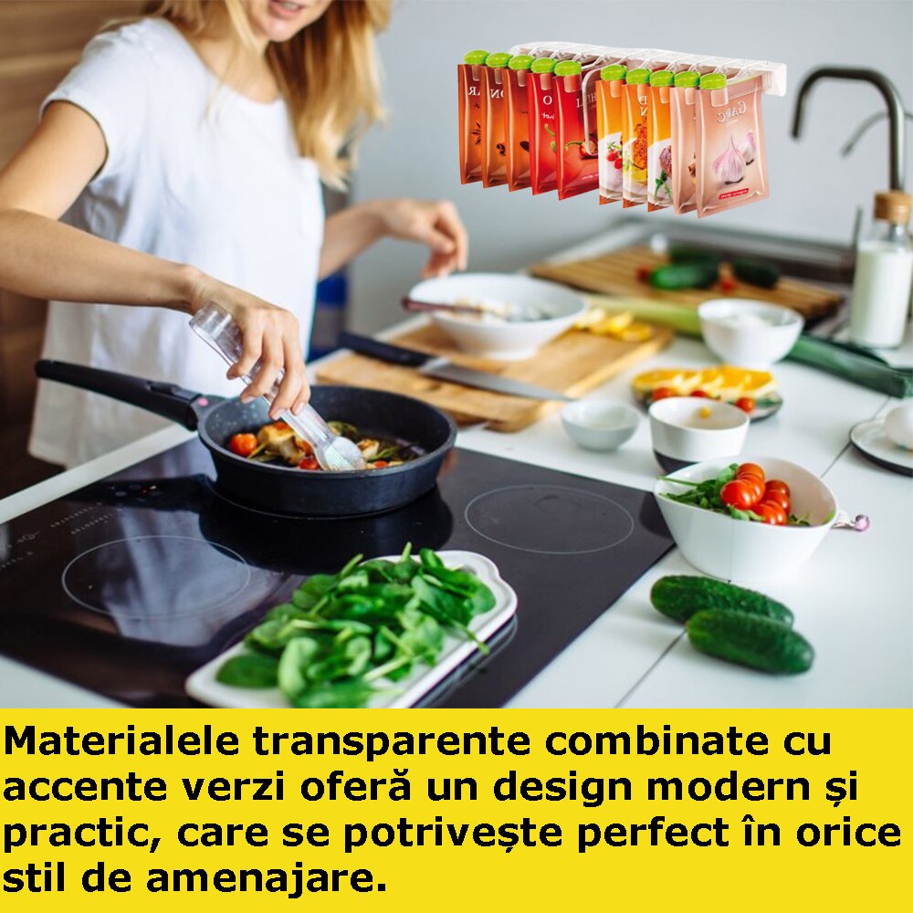 Organizator Plicuri De Condimente GREATON, 10 Cleme Incluse, Suport Pentru Perete, Capace Cu Orificii Incluse, Transparent/Verde