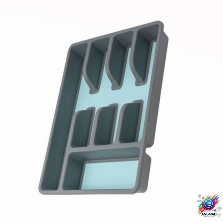 Organizator tacamuri ANGMAD; cu 5 compartimente, pt sertarul mobilei de bucatarie; robust si durabil; dimensiune: 36x26.5x4.5cm; culoare: gri, ciel