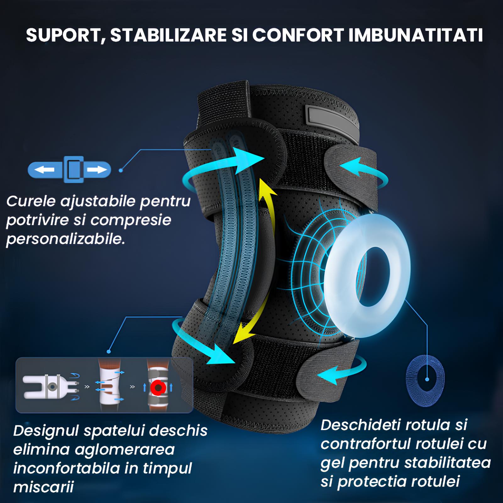Orteza de genunchi mobila cu suport patelar si articulatii laterale, sundiguer, reglabil, Marimea M