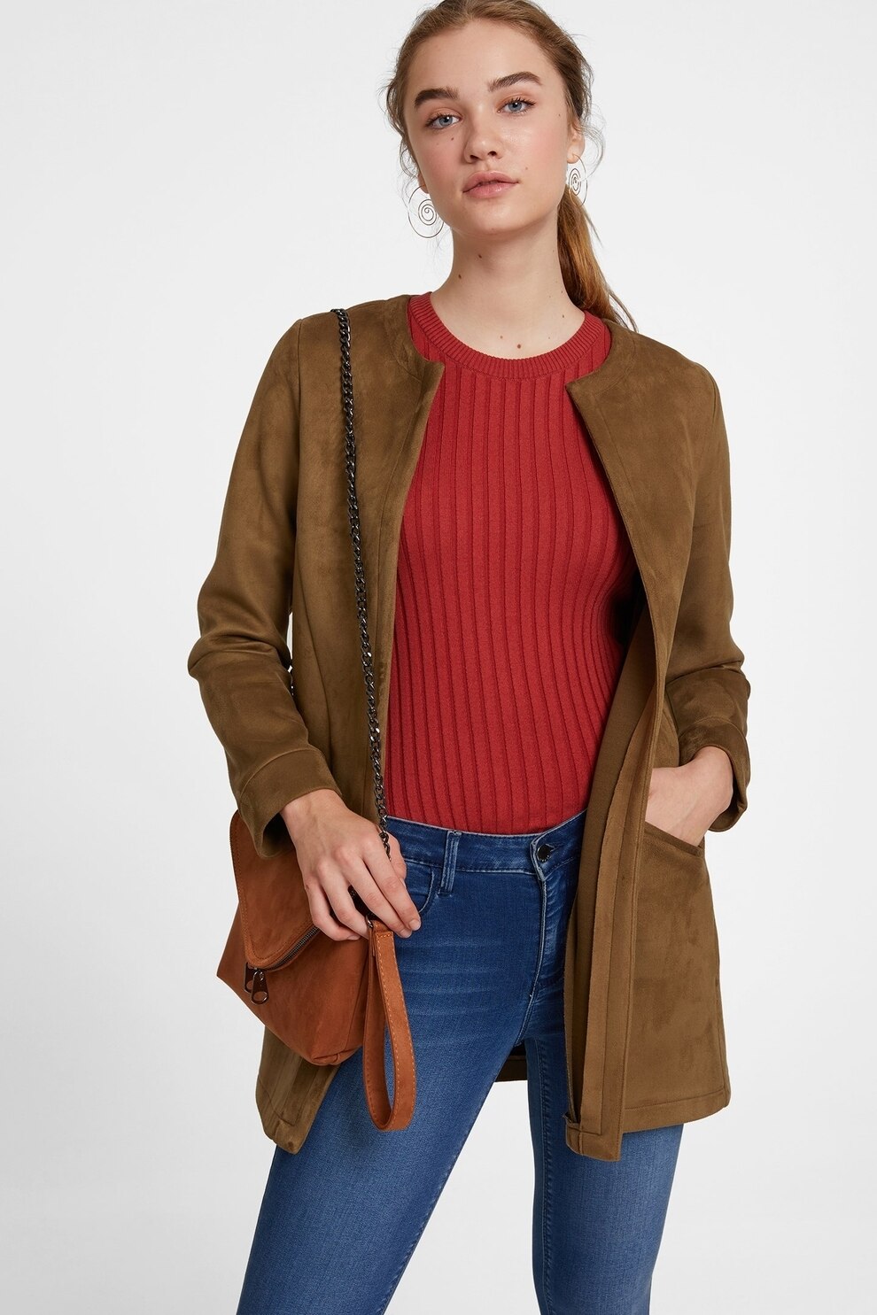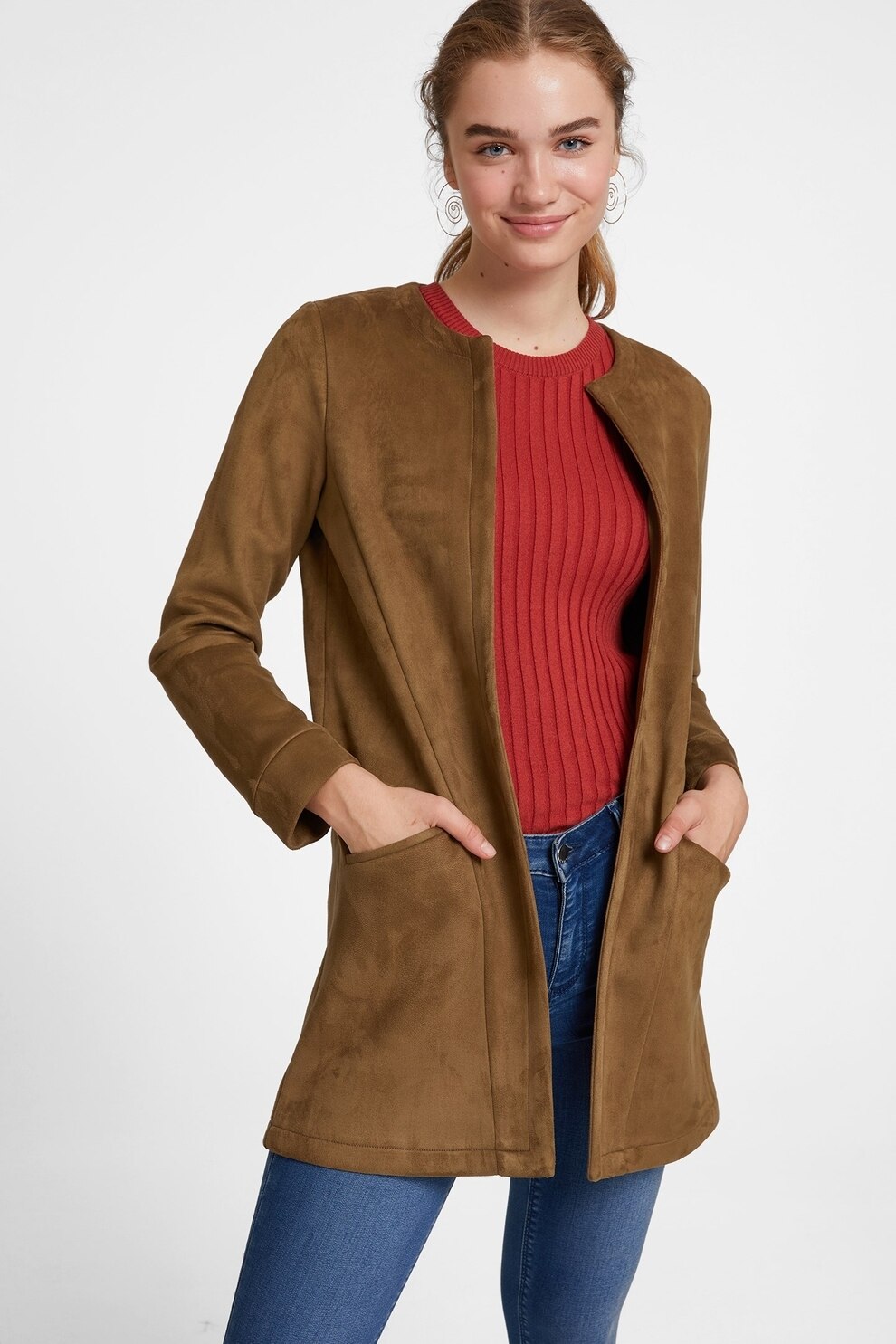 OXXO - Jacheta cu buzunare laterale, fara inchidere, Caramel