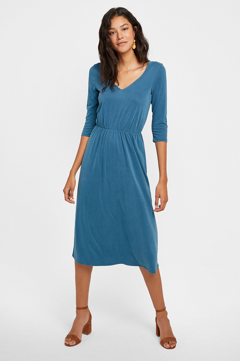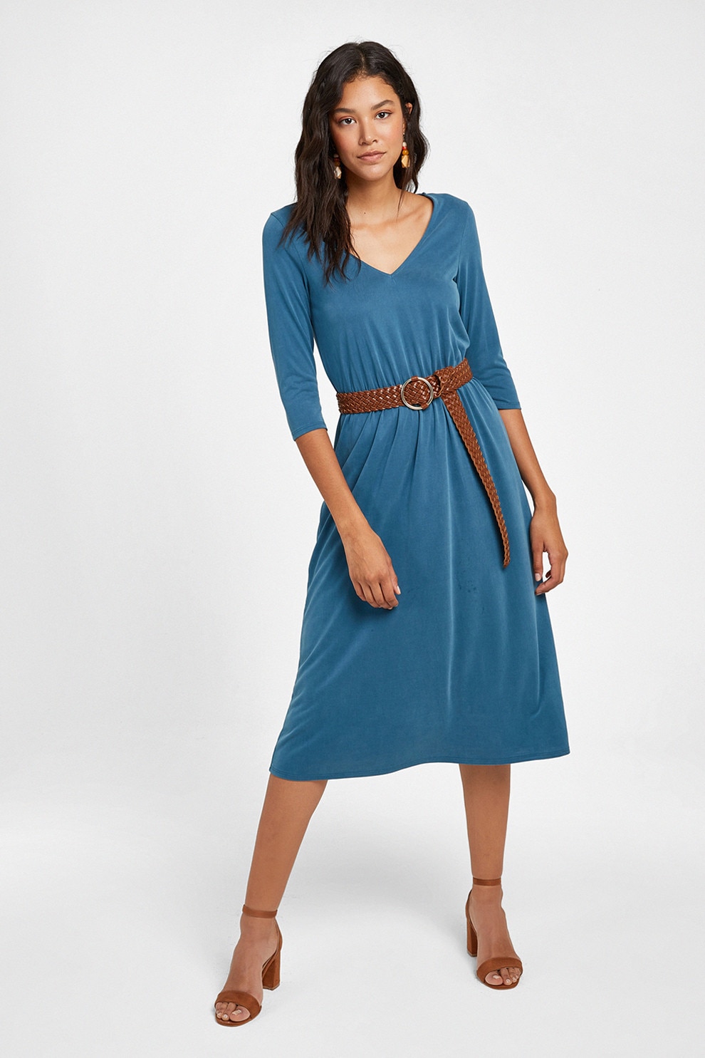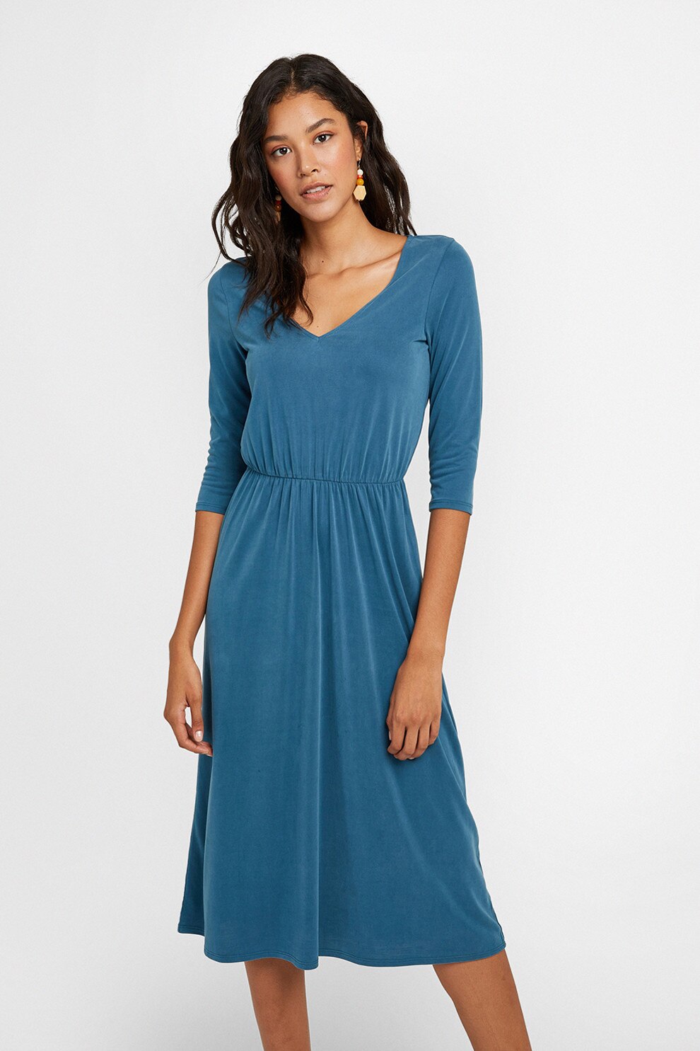 OXXO - Rochie cu decolteu in V si maneci 3/4, Albastru deschis