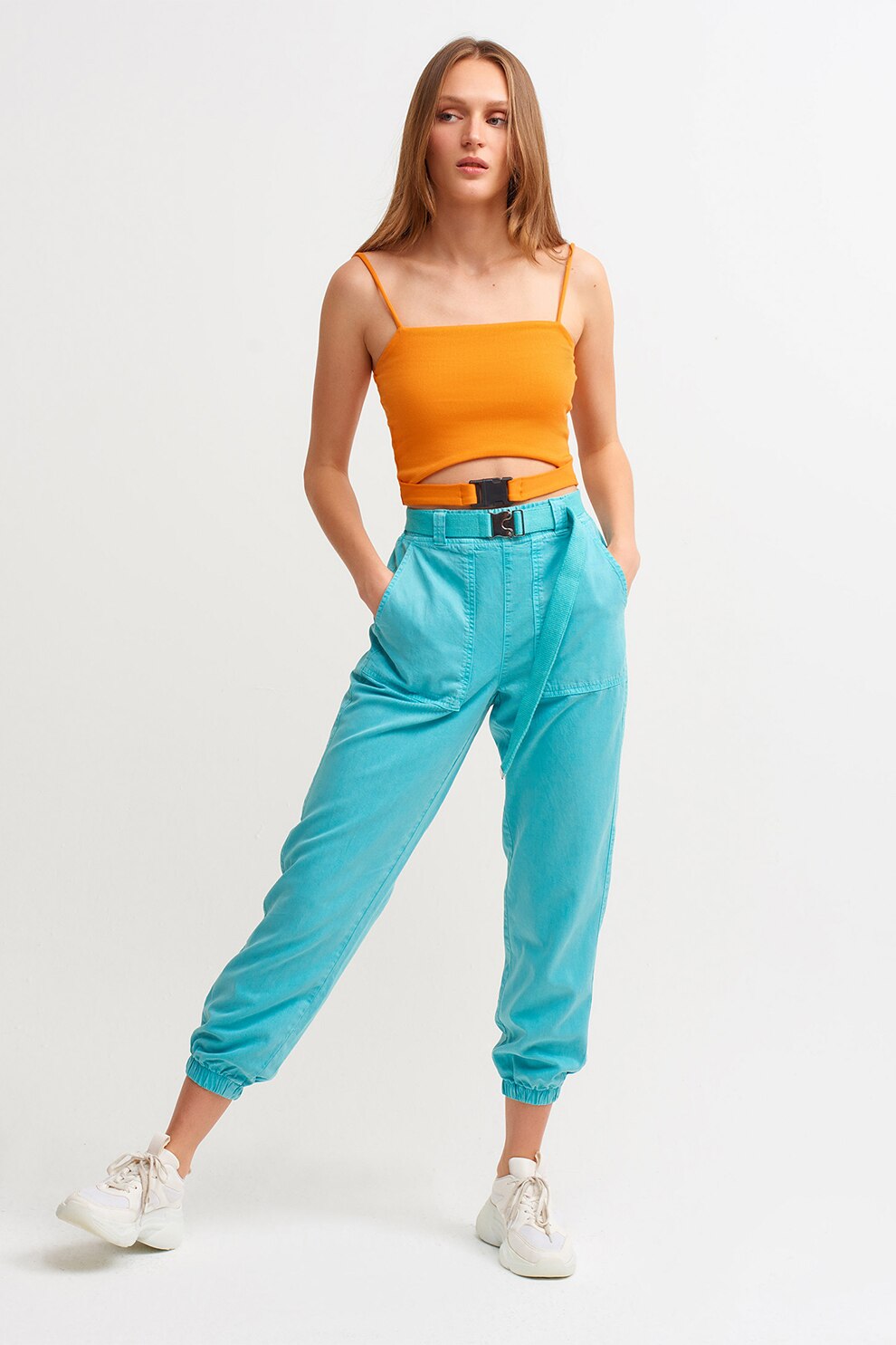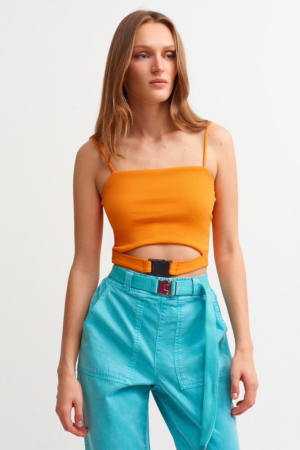 OXXO - Top crop cu bretele inguste si catarama in talie, Portocaliu, S