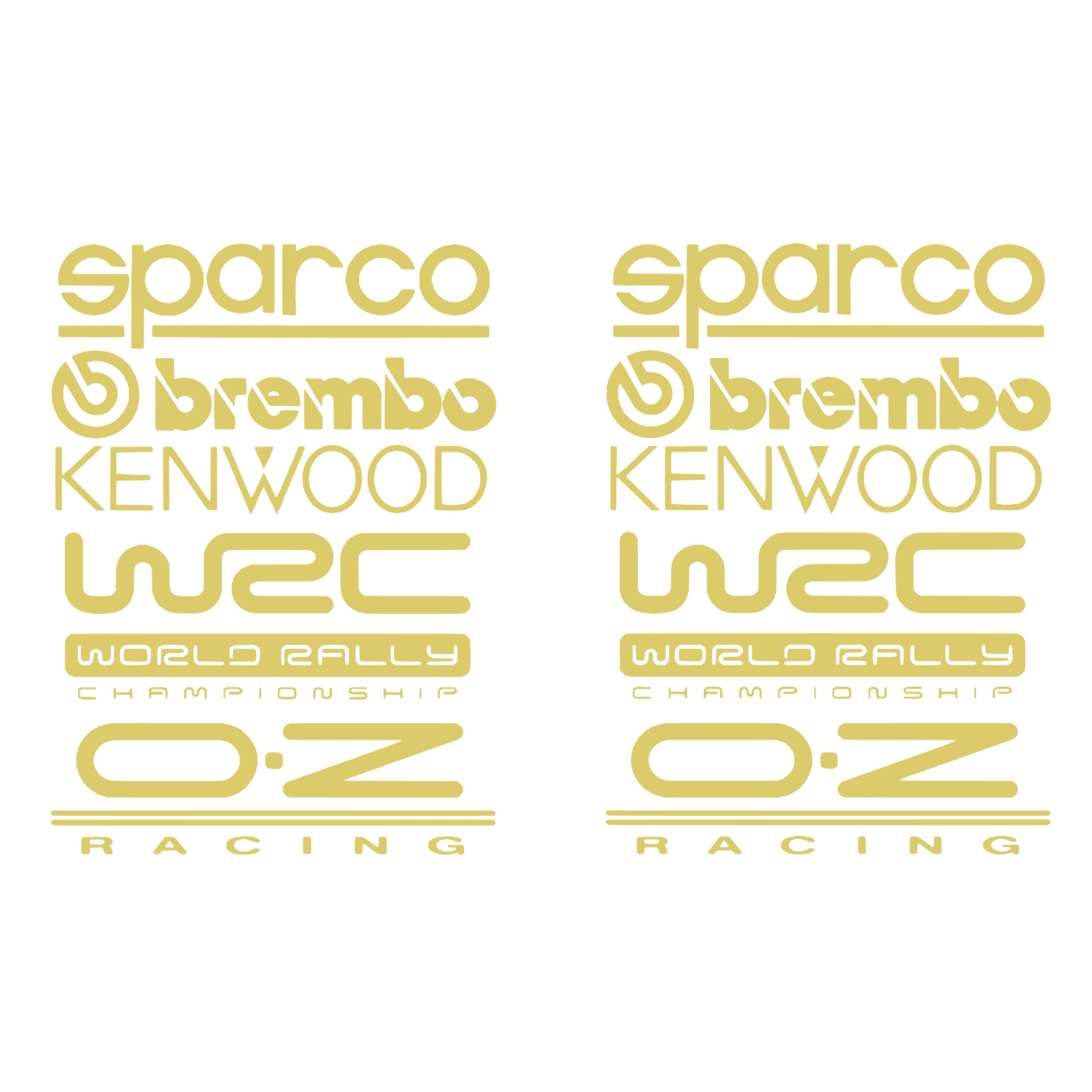 Pachet 2 bucati, 5 stickere auto, culoare auriu, 30x24 cm, Sparco, Brembo, Kenwood, WRC, OZ, ambele portiere