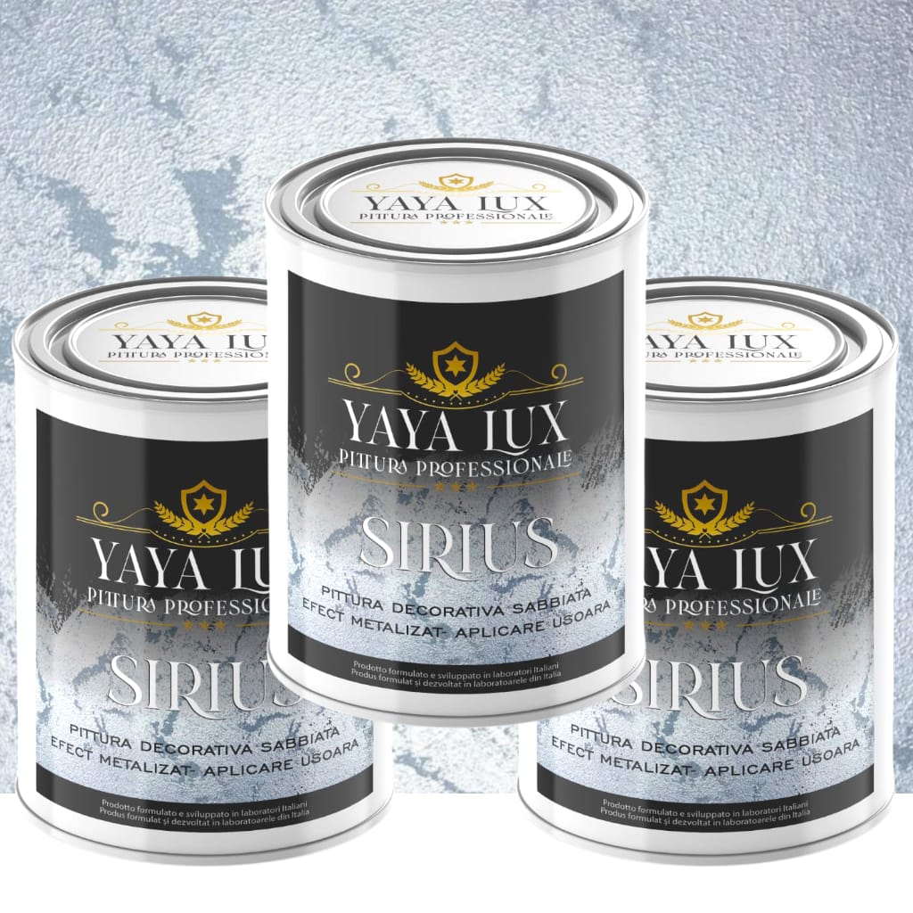 Sirius este o vopsea decorativa deosebita, ideala pentru cei care doresc sa aduca o eleganta sofisticata si unica spatiilor interioare. Aceasta isi obtine efectul remarcabil din utilizarea perlelor de sticla si a pigmentului special Argento Imaginarium, oferind un finisaj mat de inalta calitate.
