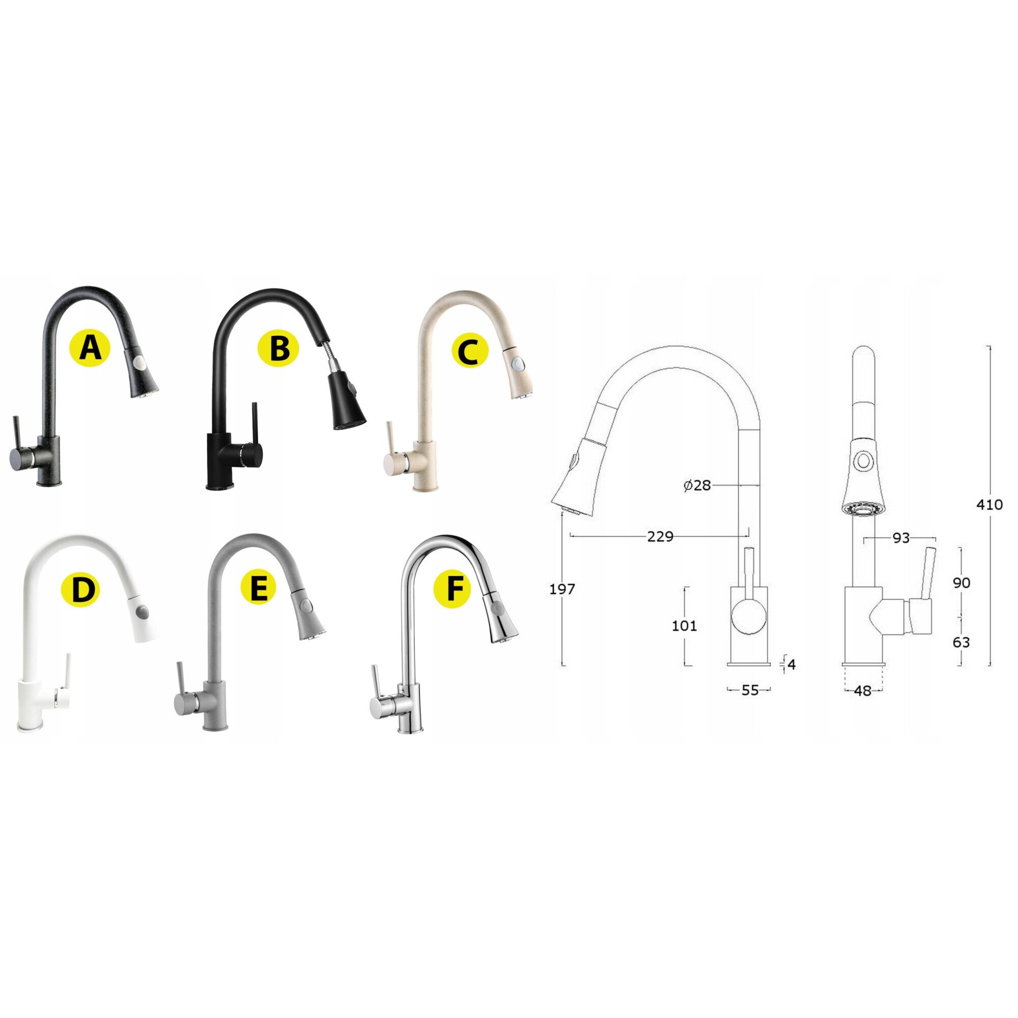 Bateria de Bucatarie SNAKE – Design Modern si Performanta Maxima Daca iti doresti versatilitate si confort, bateria de bucatarie SNAKE este alegerea potrivita! Cu un corp din alama rezistenta, finisaj elegant si functionalitate avansata, aceasta iti va transforma experienta in bucatarie. ???? Caracteristici principale: ✅ Gura de scurgere pivotanta 360° – accesibilitate completa pentru toate colturile chiuvetei ✅ Cap extractibil – permite utilizarea flexibila a apei pentru o curatare usoara ✅ Dubla functionalitate a jetului de apa – flux standard si mod dus ✅ Cartus ceramic durabil – asigura o utilizare fara scurgeri pentru o lunga perioada de timp ✅ Instalare rapida – toate accesoriile incluse in pachet Dimensiuni: ✔️ Inaltime baterie: 410 mm ✔️ Latime baterie: 251 mm ✔️ Raza de actiune a gurii de scurgere: 229 mm ✔️ Diametrul orificiului de montare: 35 mm (standard) Disponibila in sase variante de culori, bateria SNAKE poate fi personalizata astfel incat sa se potriveasca perfect cu decorul bucatariei tale. Indiferent daca preferi negru mat, crom clasic sau tonuri neutre, vei gasi varianta ideala pentru tine! |  |