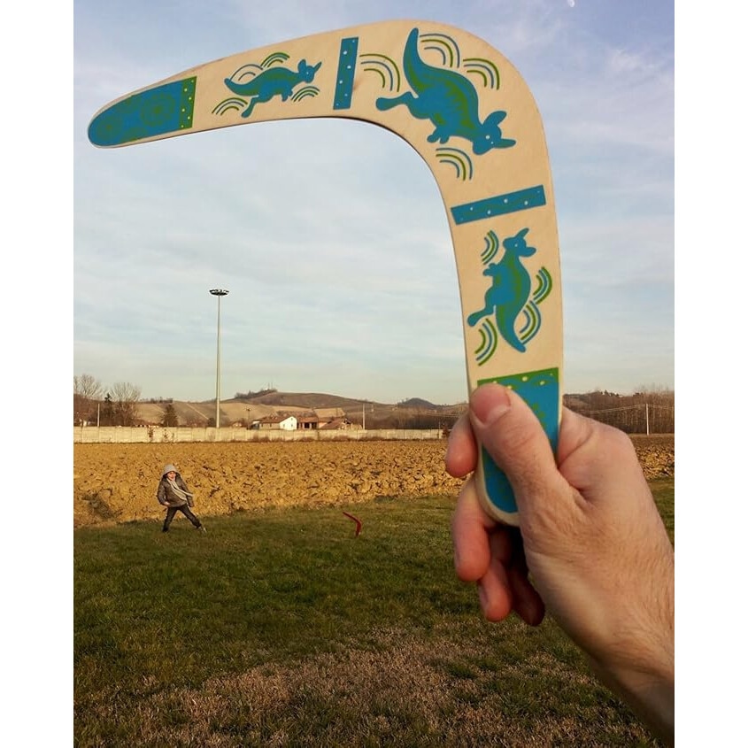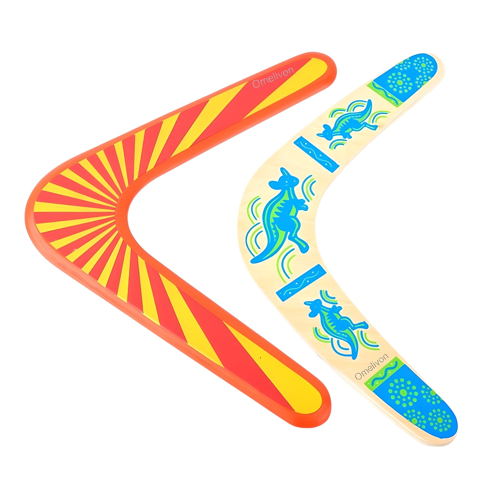 Pachet de 2, bumerang in forma de V, jucarie zburatoare de divertisment in aer liber, din lemn, Omelivon®