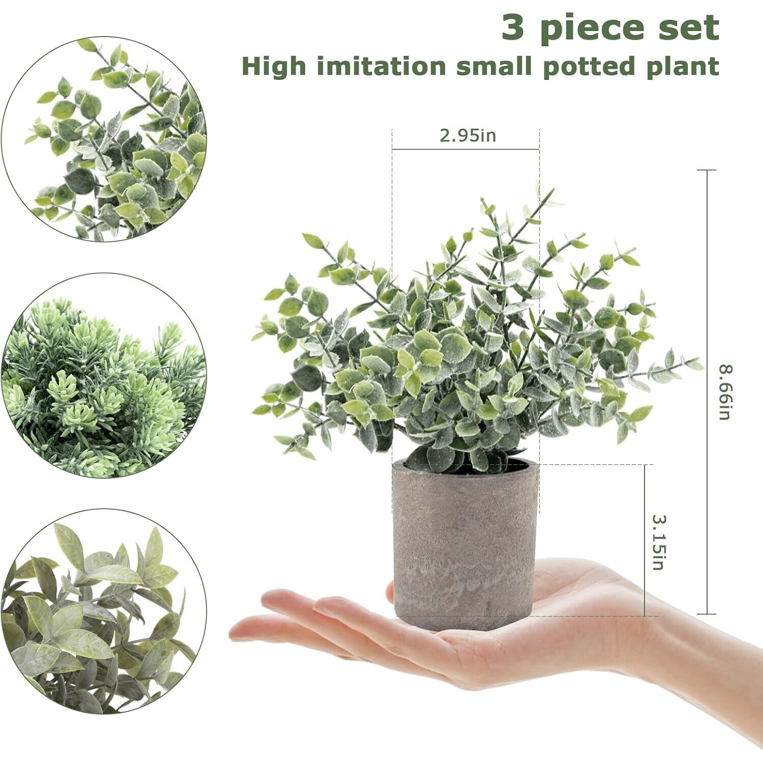【Design delicat】Plantele de birou realiste pot aduce viata verde si prospetime spatiului tau de locuit. Adoptam un design unic pentru a imita frunzele inghetate gri-verde ale eucaliptului si ne adunam la suprafata fiecarei plante in ghiveci. Frunzele gri-verde le fac sa para mai realiste, ceea ce nu este praf, va rog sa nu va faceti griji pentru asta.