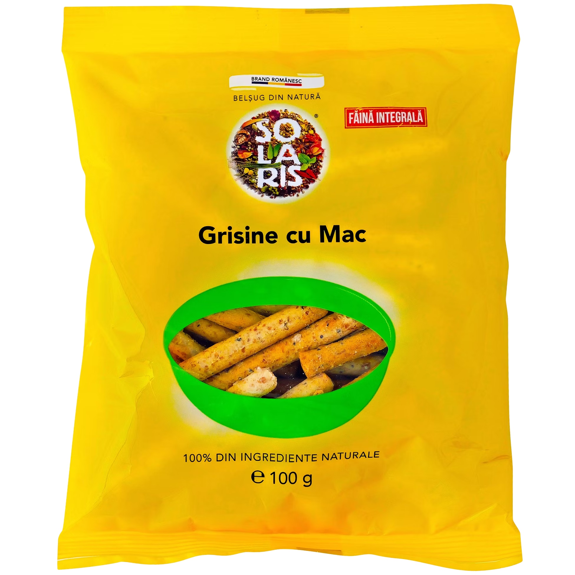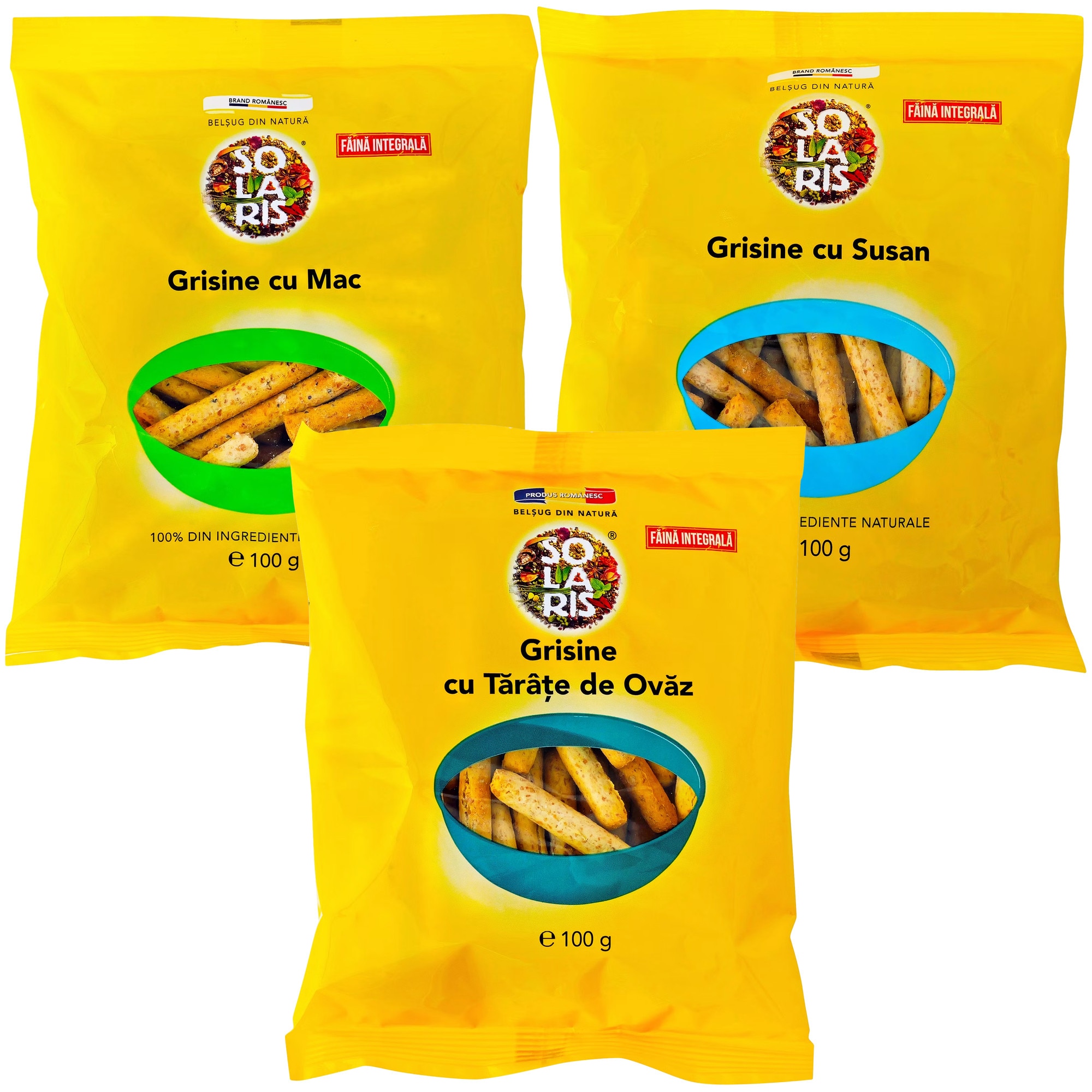 Set 3x Grisine proteice integrale (Seminte de mac + Seminte de susan + Tarate de ovaz), 100% natural, 3x100 grame, Solaris Plant