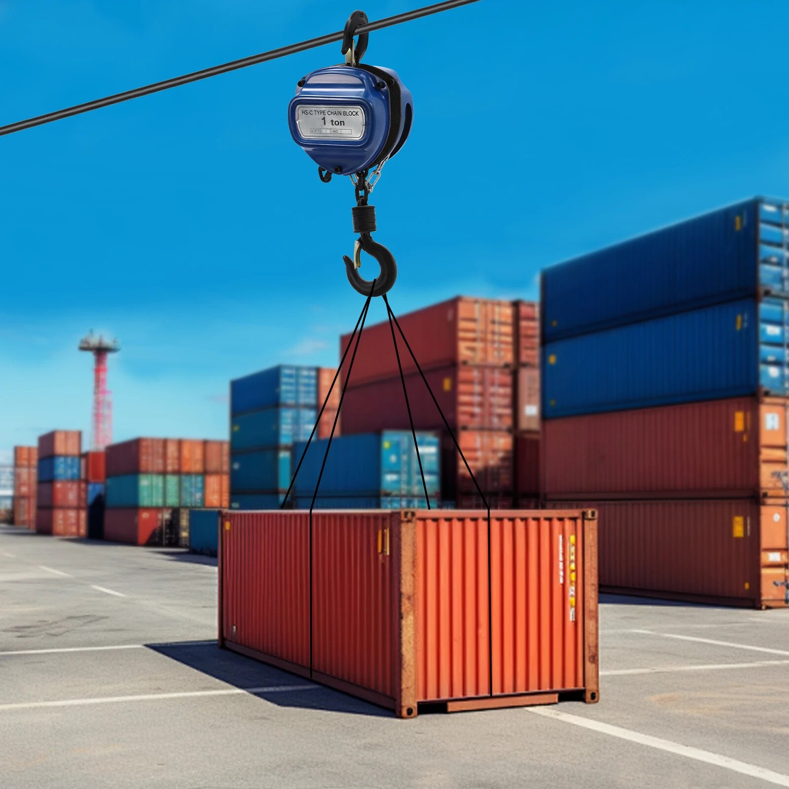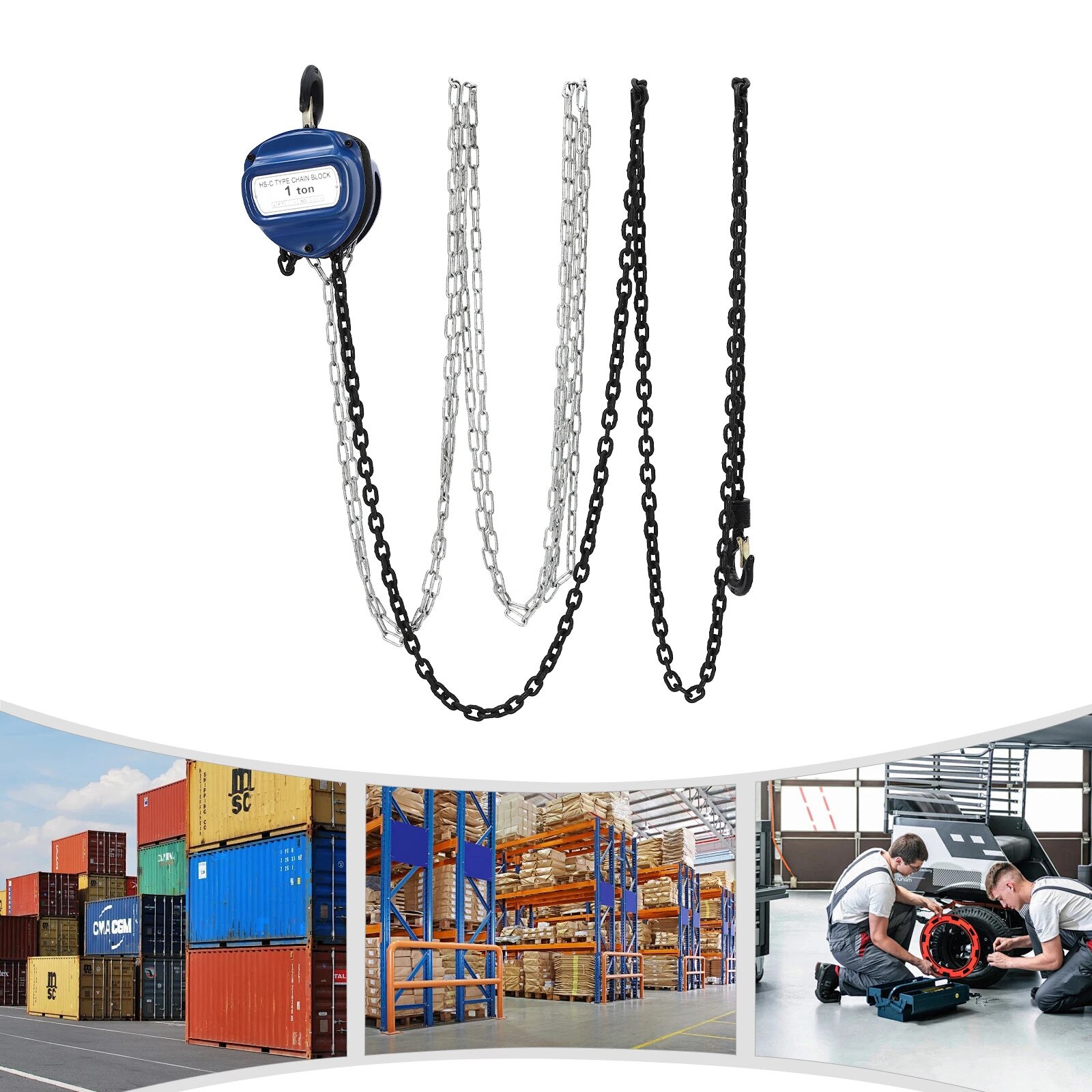Palan cu lant, Manual, 1 t/1000 kg, Inaltime de ridicare 4 m, Otel, Albastru
