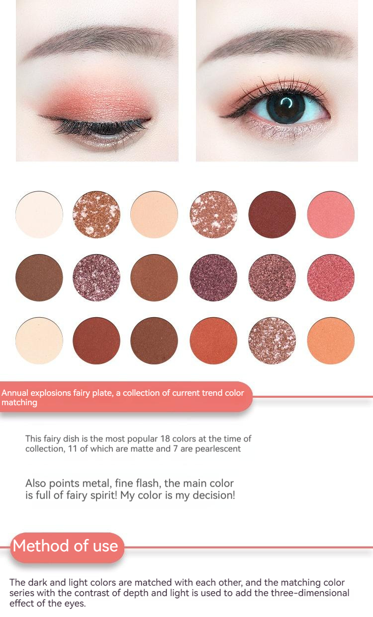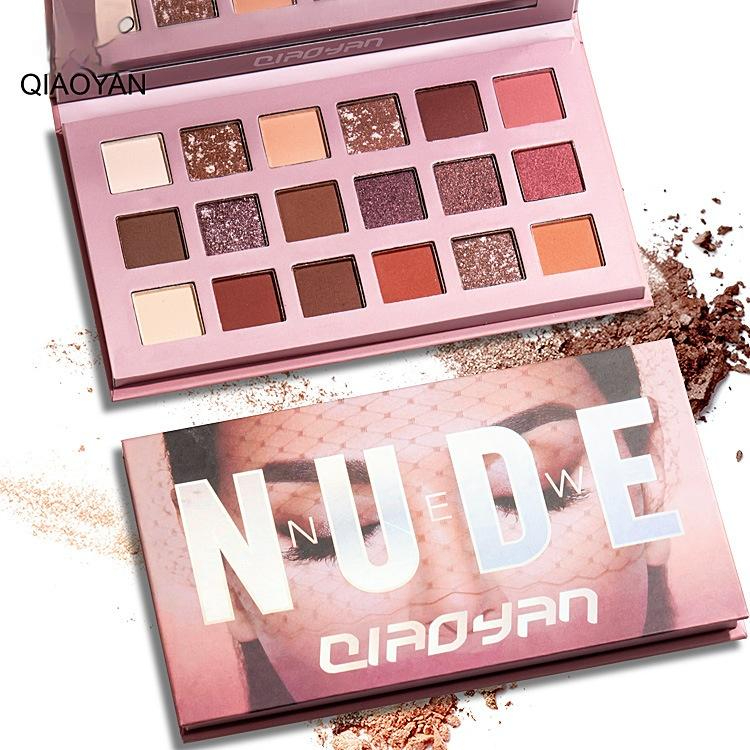 Paleta 18 farduri de pleoape, Qiaoyan, 11 culori mate/7 culori stralucitoare, Multicolor