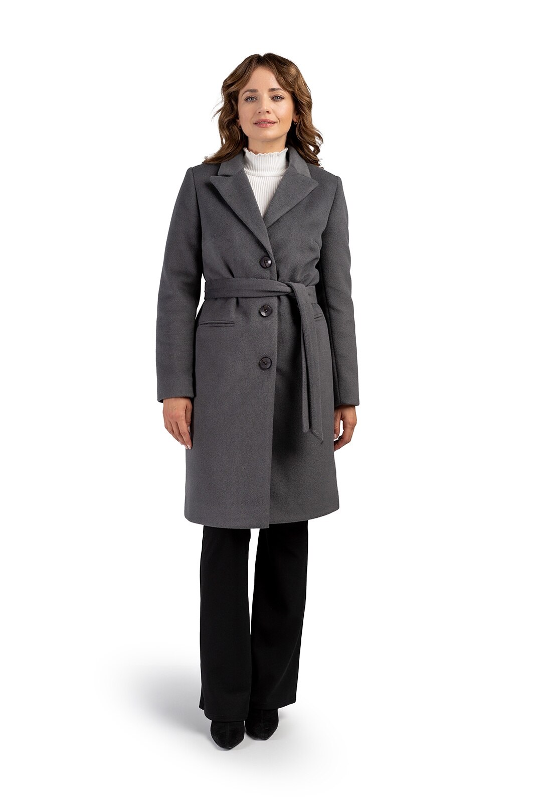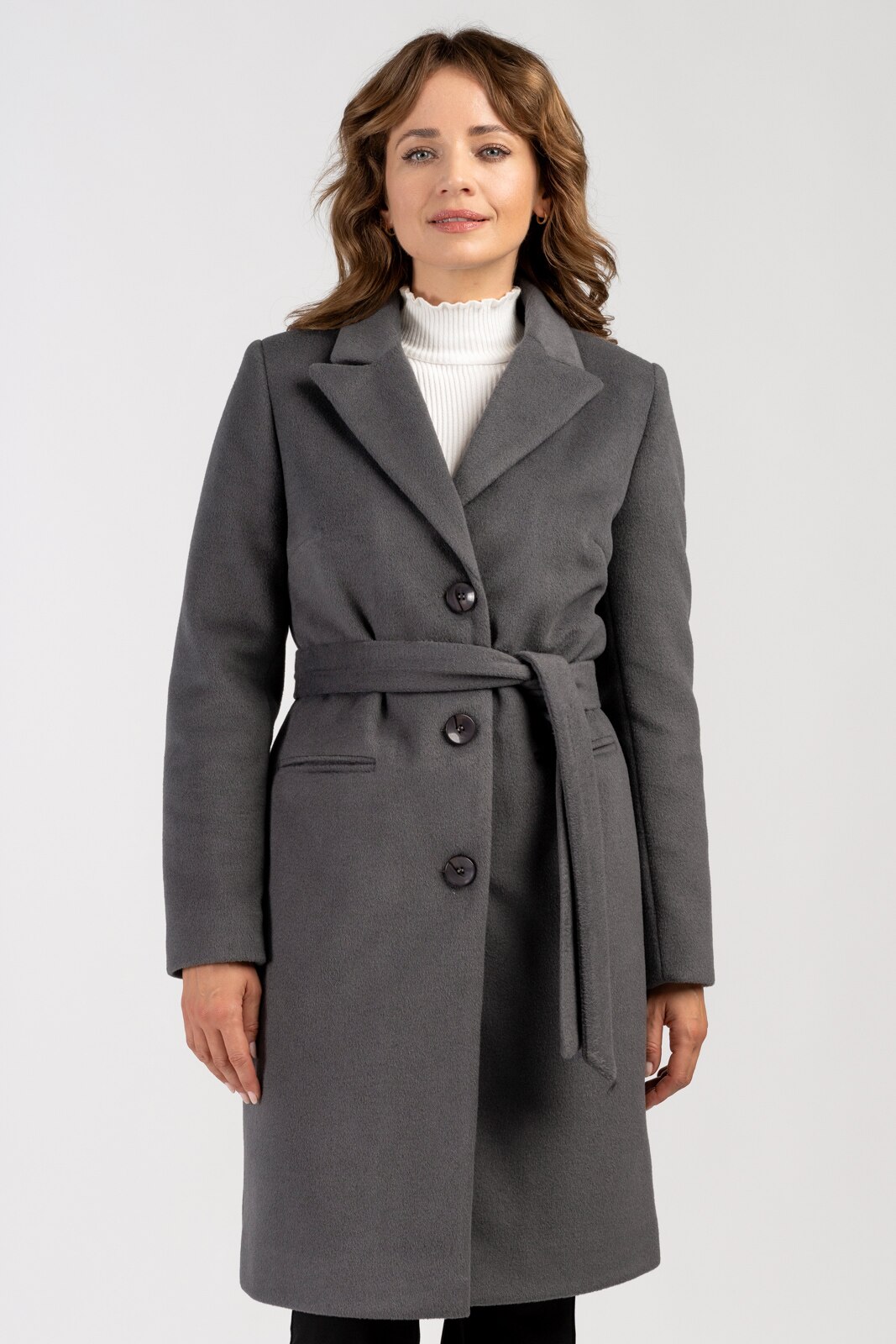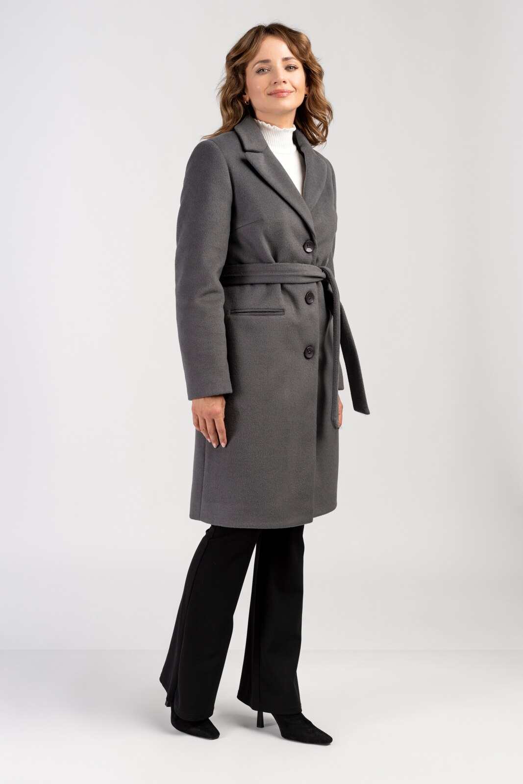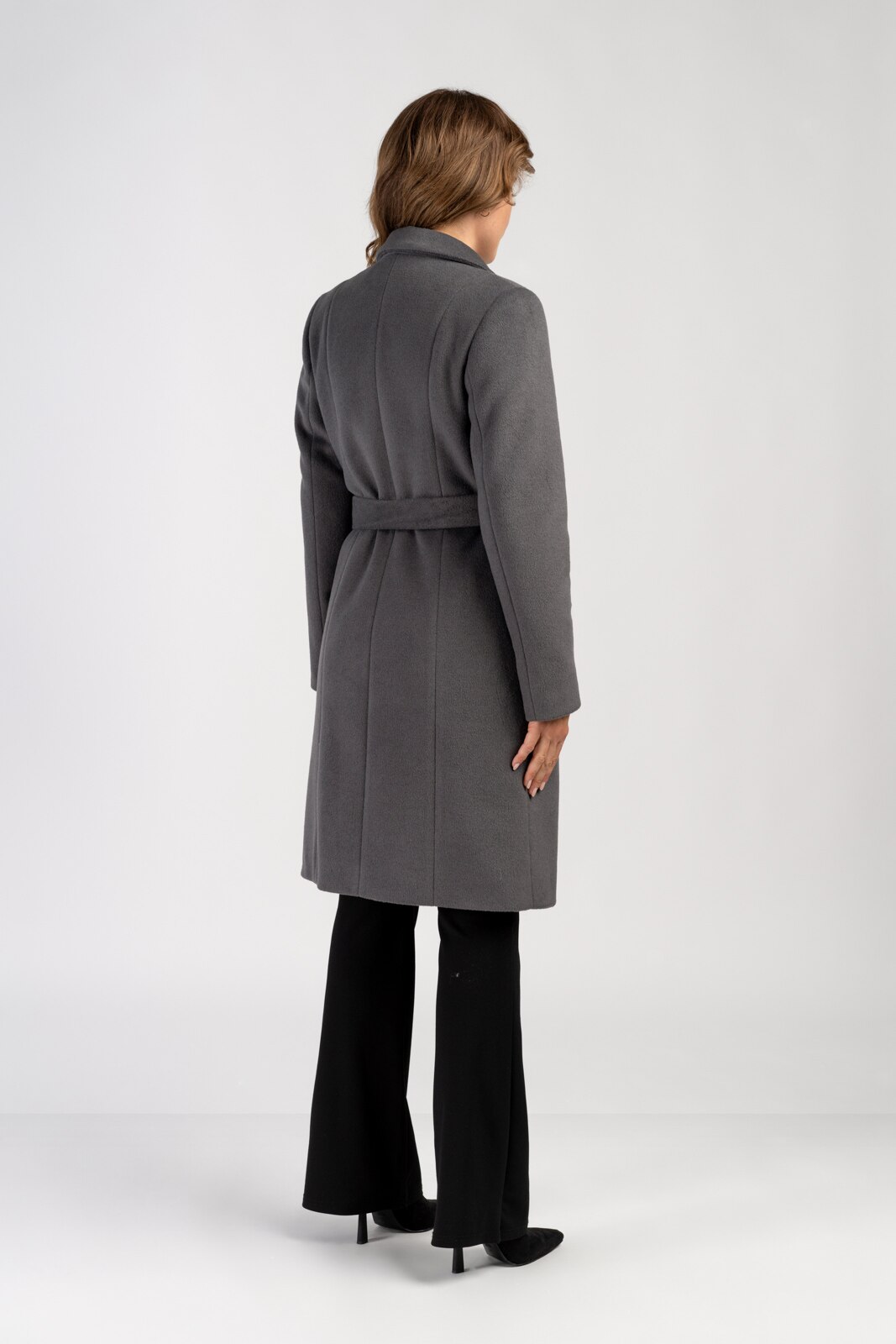 Palton elegant de dama pentru toamna/iarna, Salme, model Mollie, din alpaca, cu curea, gri, 46 EU