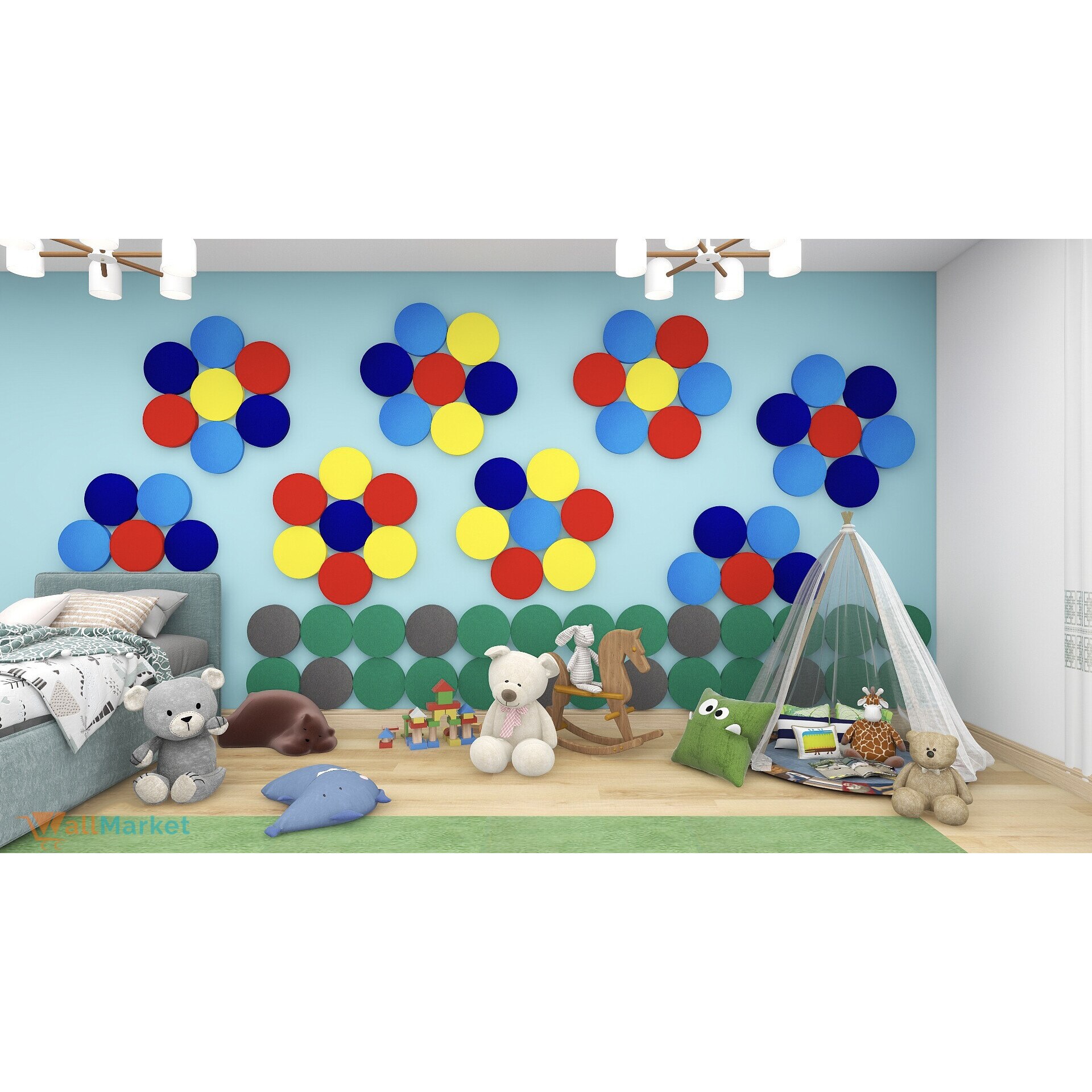 | Panourile de perete acustice 3d WallMarket sunt ideale pentru camere de zi, camere pentru copii, birouri si alte spatii publice. Proprietatile de izolare fonica permit izolarea fonica eficienta a interiorului. Selectia larga de forme, culori si grosimi confera peretilor un efect 3d unic. Panourile sunt acoperite cu o textura catifelata extrem de placuta la atingere, fiind in acelasi timp foarte durabile si usor de instalat. Ce diferentiaza panourile decorative acustice WallMarket?- folosim spuma poliuretanica acustica de cea mai inalta calitate, care datorita structurii sale cu celule deschise absoarbe perfect sunetele, imbunatateste acustica interioara si reduce reverberatia