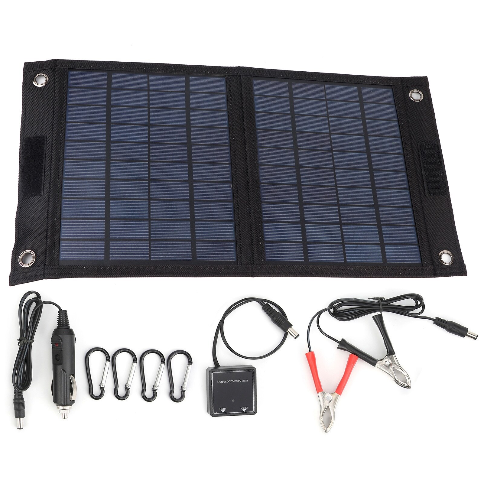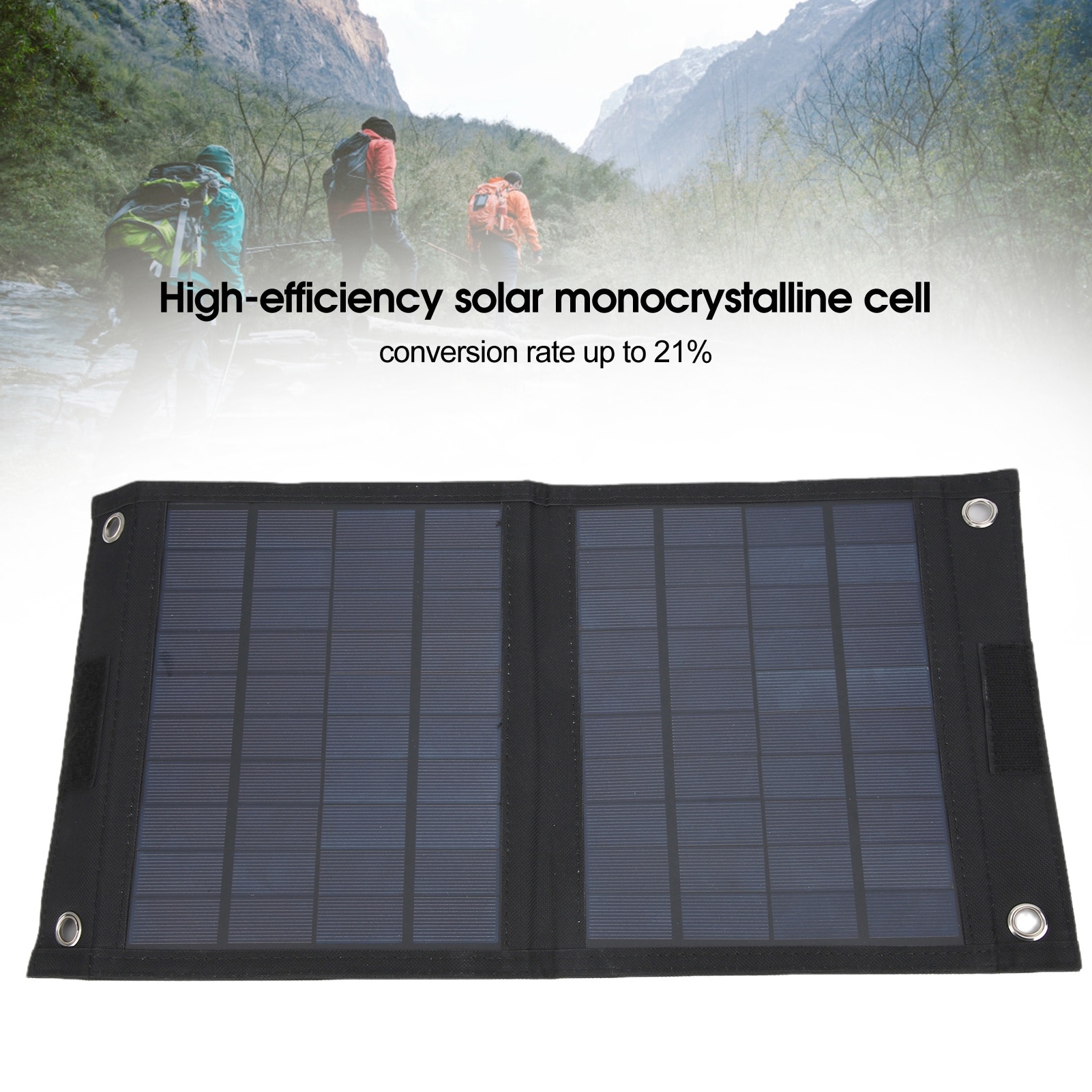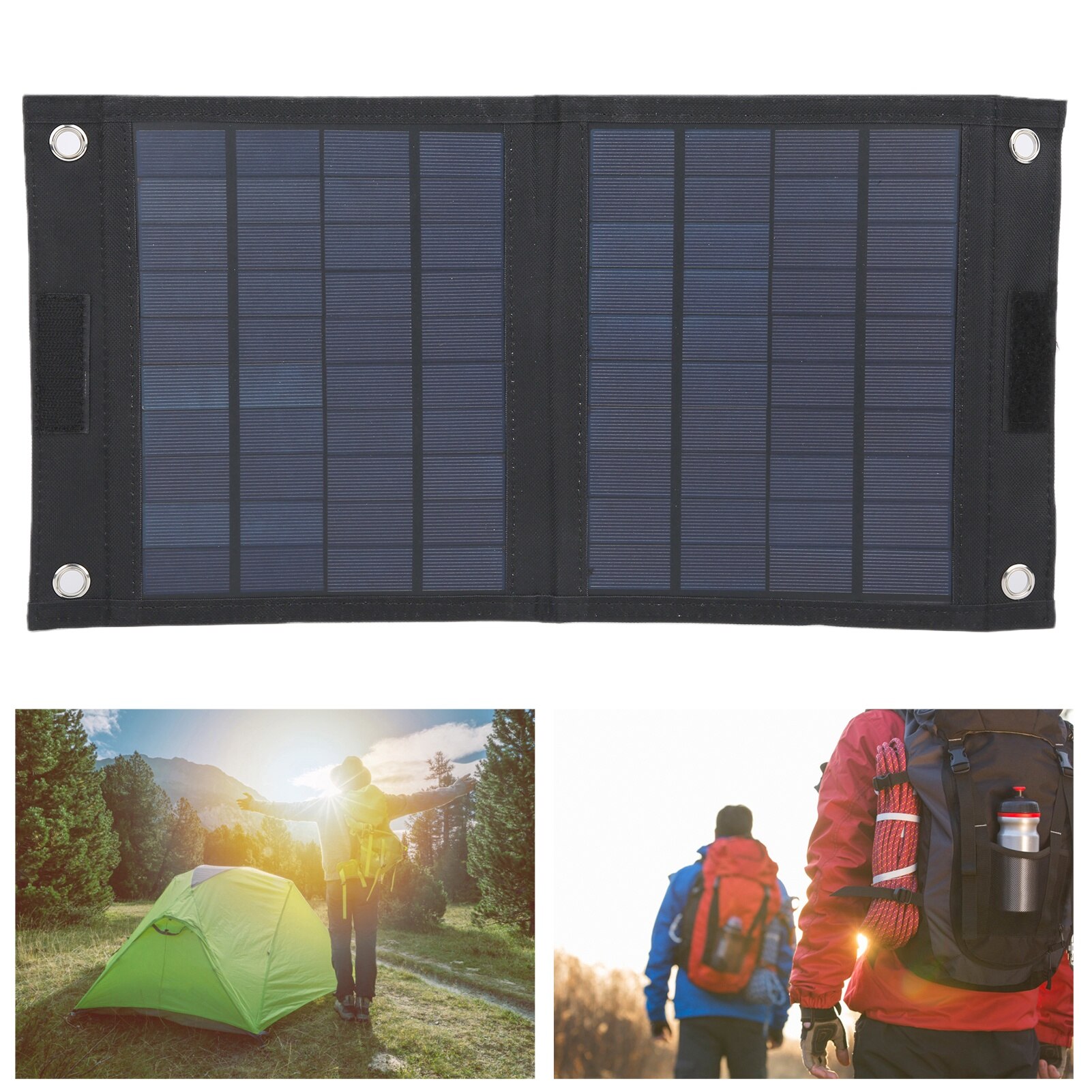 Panou solar flexibil 20W, Enforose, impermeabil IP65, iesire duala USB, dimensiuni pliat 23.5x22.5cm, dimensiuni desfacut 23.5x45cm