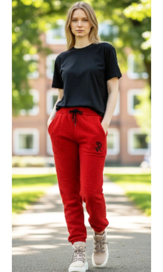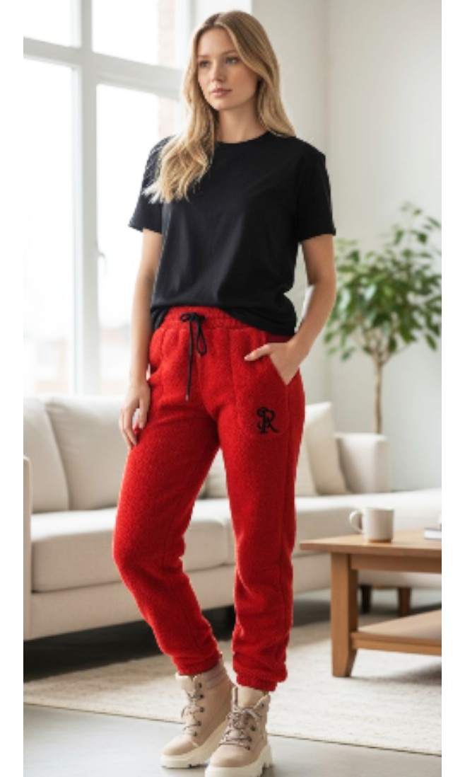 Pantaloni dama cocolino, grosi si pufosi, StarFashion, cu monograma brodata, rosu, L