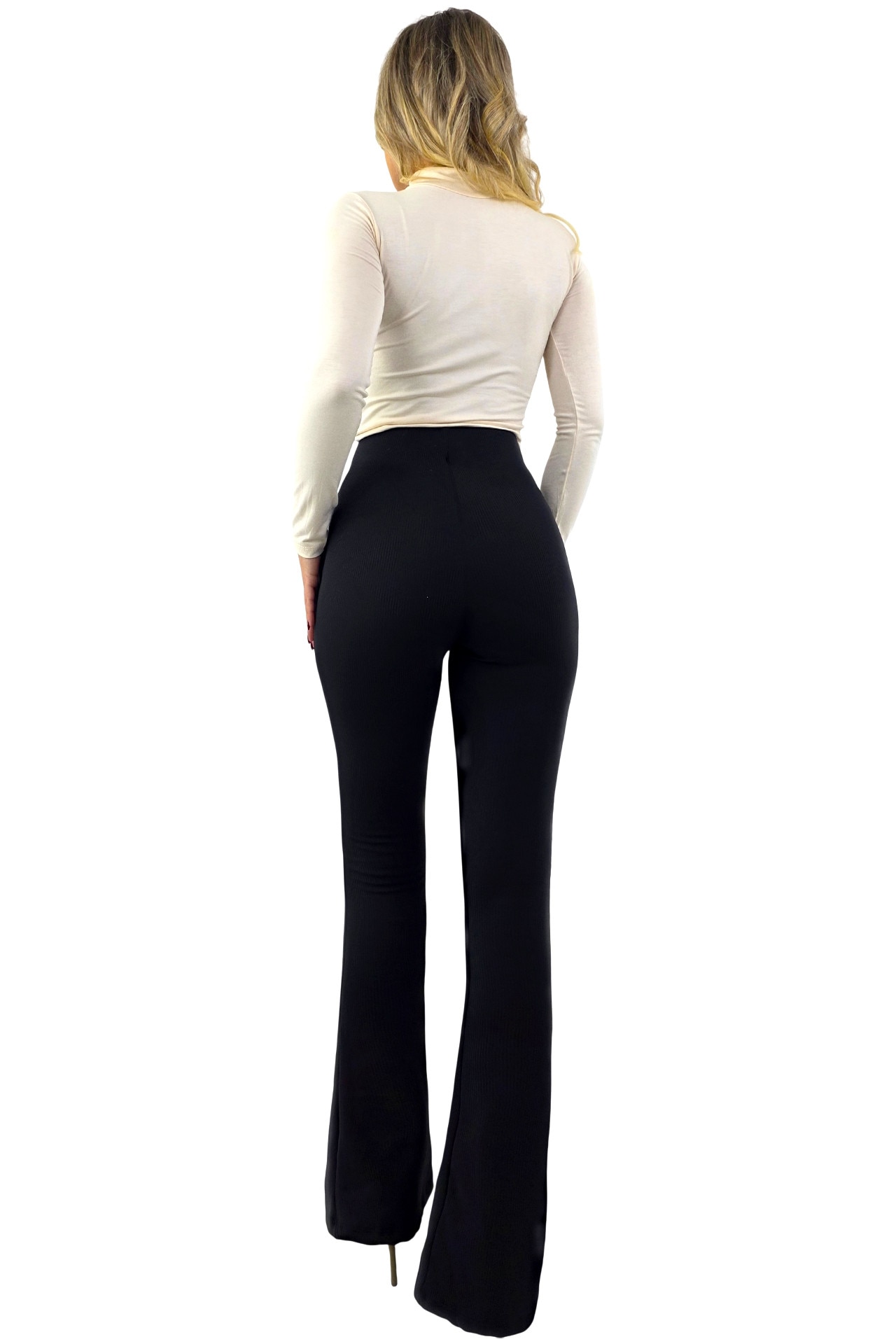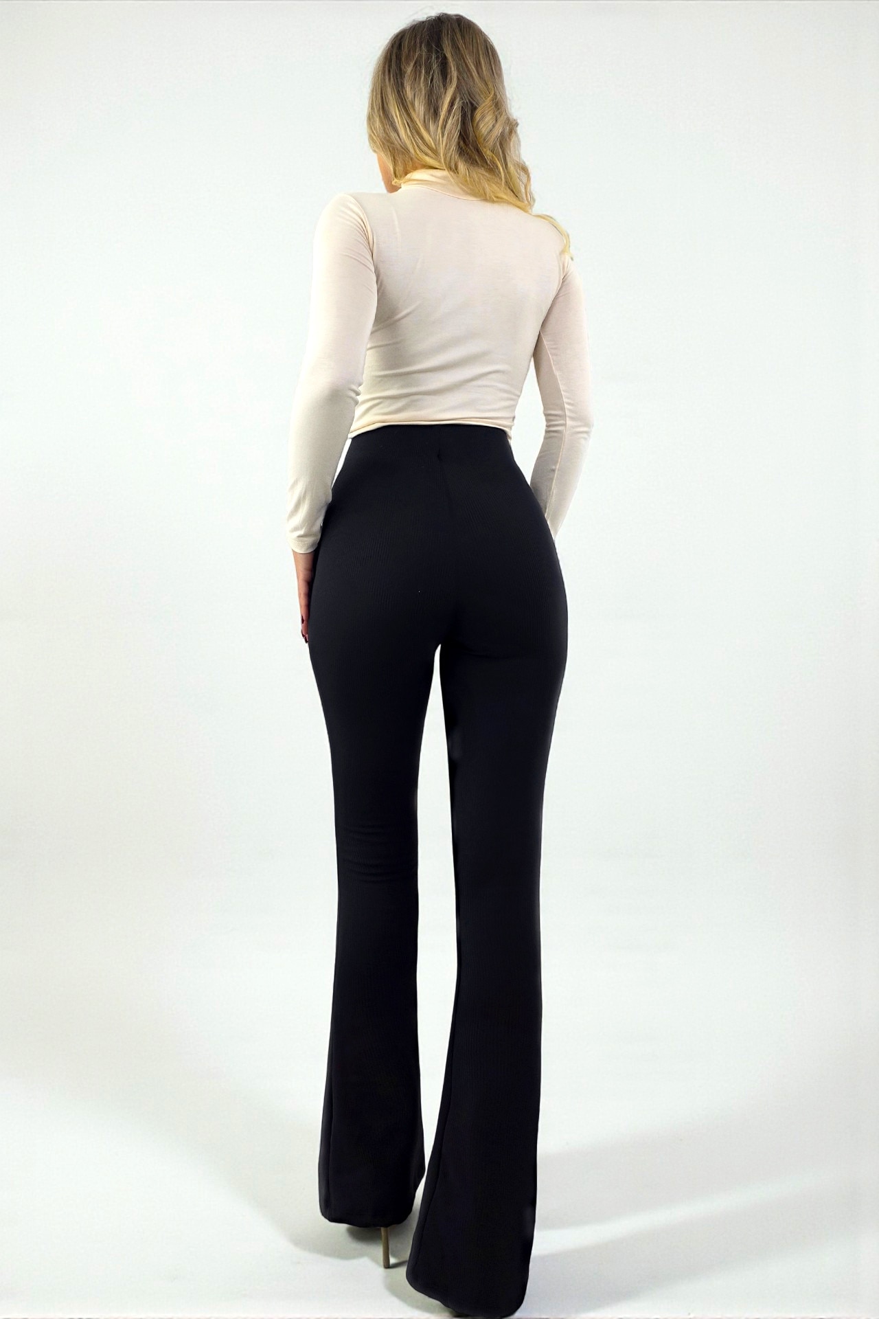 Pantaloni vatuiti, slim evazati, FashionForYou, model TetraFlex, cu banda elastica, Negru, Marimea S