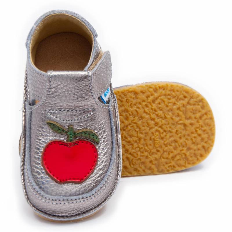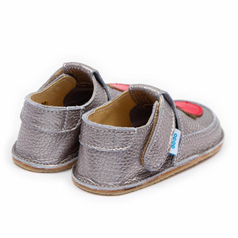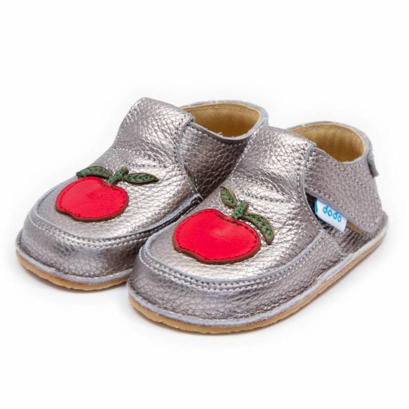 Pantofi copii barefoot Dodo Shoes Mar, Culoare Argintiu din piele naturala cu talpa flexibila pentru mers sanatos Marimea 20