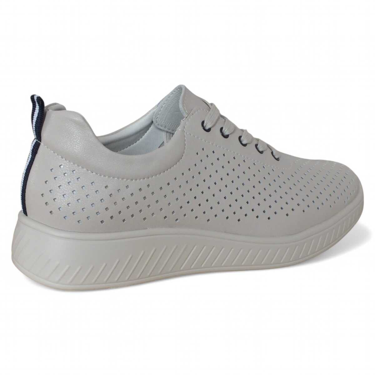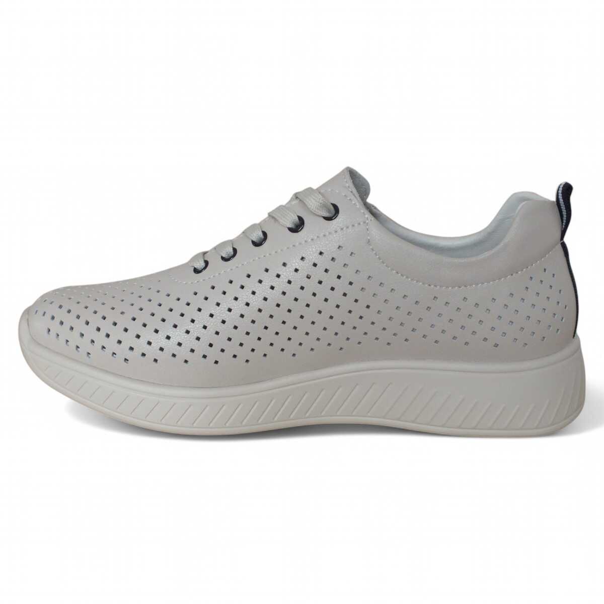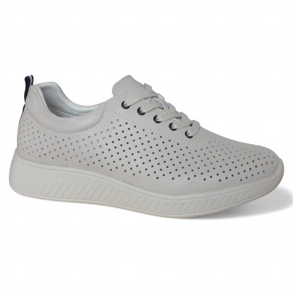 Pantofi din piele naturala Maria Conti, cu perforatii, inchidere cu siret, talpa usoara si decor in spate, Bej, 38 EU